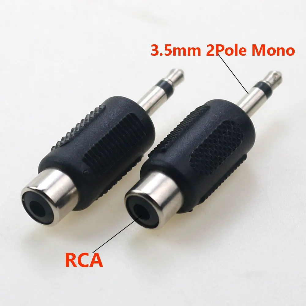 Conector RCA de Audio de plástico de calidad niquelado de 2 3,5, conector RCA a conector Jack, adaptador de enchufe Mono/estéreo de mm