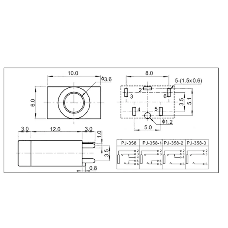 Comprar Conector de auriculares de doble canal para Audio y vídeo, 10 piezas, 3,5mm, PJ, 313, PJ320, PJ325, PJ326, PJ327, PJ358, PJ392, PJ342