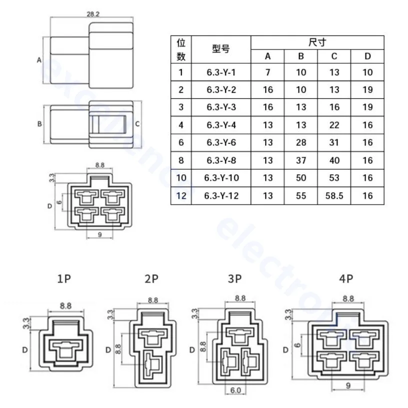 Comprar Conector automotriz hembra, 10 piezas, 6,3mm, 2 pines, 3 pines, 4 pines, 6 pines, 8 pines, 9 pines