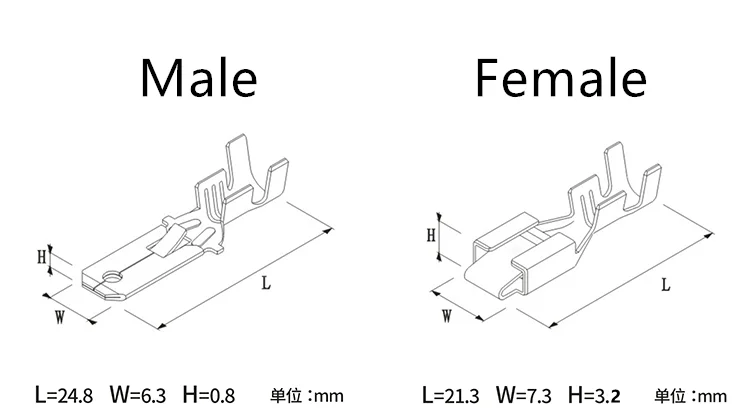 Comprar Conector automotriz hembra macho para coche, Terminal de crimpado, conectores de cable eléctrico, cobre chapado en oro, 6,3mm, 50 unidades por lote
