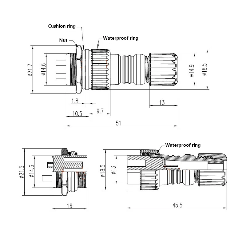 Comprar Conector de aviación GX16, 1 piezas, tuerca trasera de acoplamiento impermeable, enchufe macho y hembra y enchufe M16