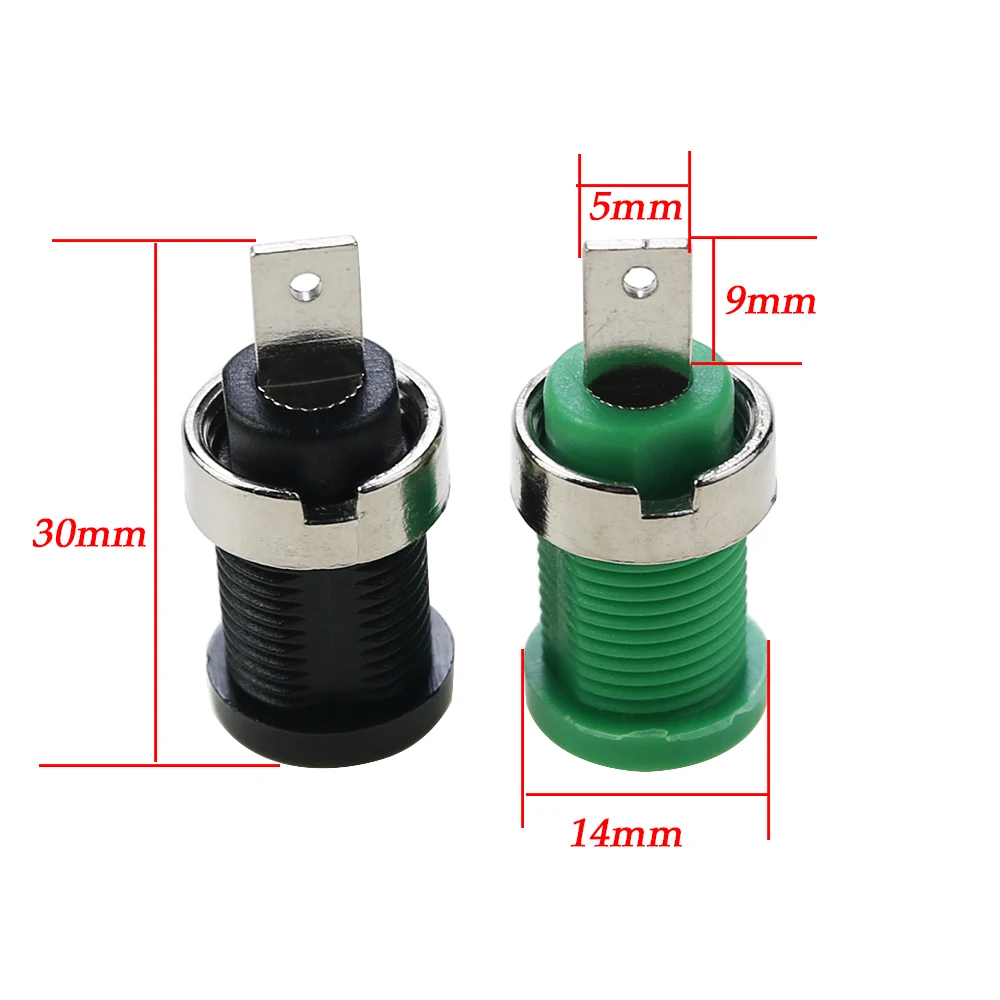 1. Cobre puro grueso, fuerte conductividad, alta corriente.2. Resistencia a altas temperaturas, fuselaje de material de alto aislamiento, buena resistencia, resistencia enchufable y larga vida útil3. Enchufe de 4mm, conveniente para conectar con enchufe banana.4. Tuercas independientes, fijas y firmes, no fáciles de aflojar. Utilizado durante mucho tiempo en pruebas, equipos de prueba para salida de conector de fuente de alimentación, Conector de audio de amplificador de potencia HIFI, etc.5. Las características de alta corriente Tiene, buena conductividad.Especificación:Longitud: 30mmMaterial aislante: ABSClasificación actual: 32AVoltaje: 600VGénero: enchufeAdecuado para apertura de panel: 12mmColor: negro, rojo, amarillo, verde, azulUno:Antes de comprar, compruebe la imagen cuidadosamente.Como devolución postalLos costes de una compra incorrecta corren a cargo de los compradores.