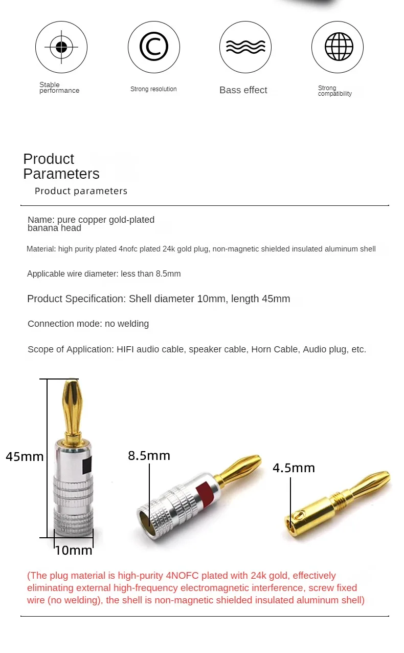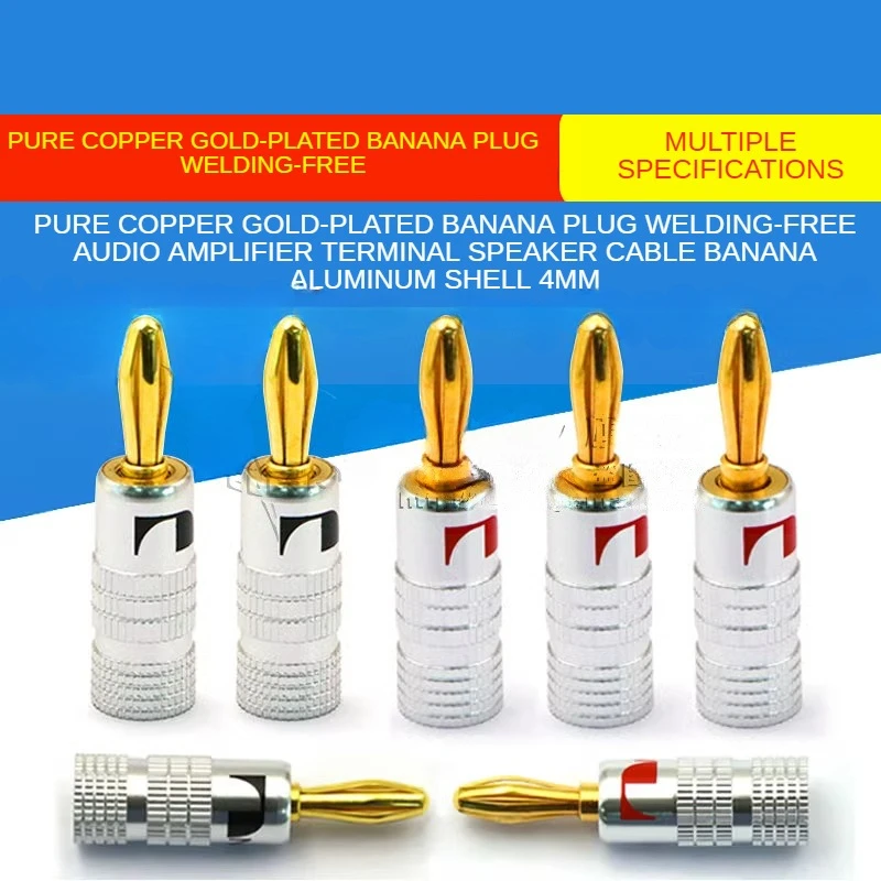 Comprar Conector Banana chapado en oro de cobre puro, Terminal de amplificador de Audio sin soldadura, Cable de altavoz, carcasa de aluminio Banana de 4mm