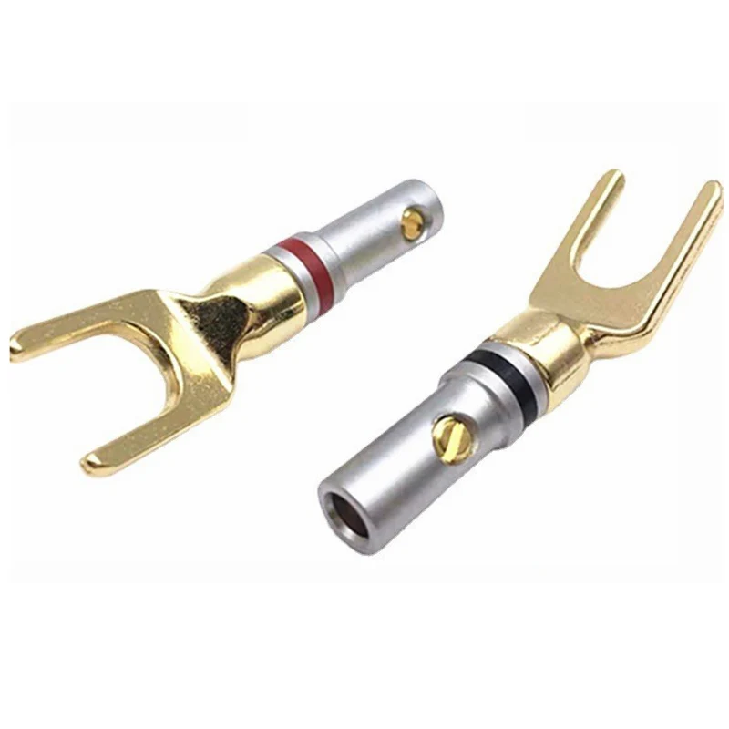 Conector Banana AMP HIFI de 2 piezas, 4mm, chapado en cobre, tipo Y, Terminal de enchufe tipo U, adaptador de altavoz, amplificador, conector de Audio, poste de encuadernación de corte cruzado en negro y rojo