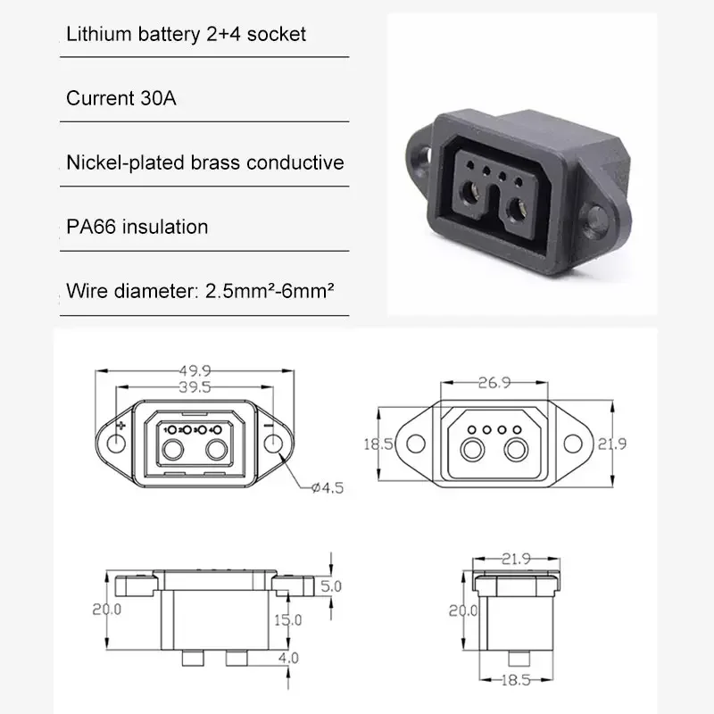 Conector de batería para bicicleta eléctrica, 30A, 2 + 4, enchufe de 6 pines, puerto de carga para bicicleta eléctrica, enchufe de Cable, Cable adaptador de corriente para baterías