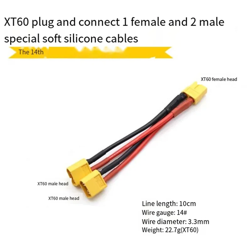 Conector de batería paralelo XT60, 1 hembra a 2 cables macho, extensión Dual, divisor en Y, Cable de silicona de 14AWG para batería RC