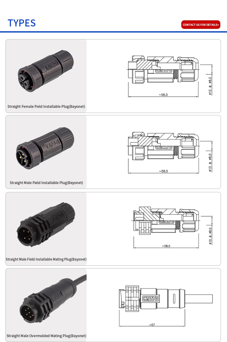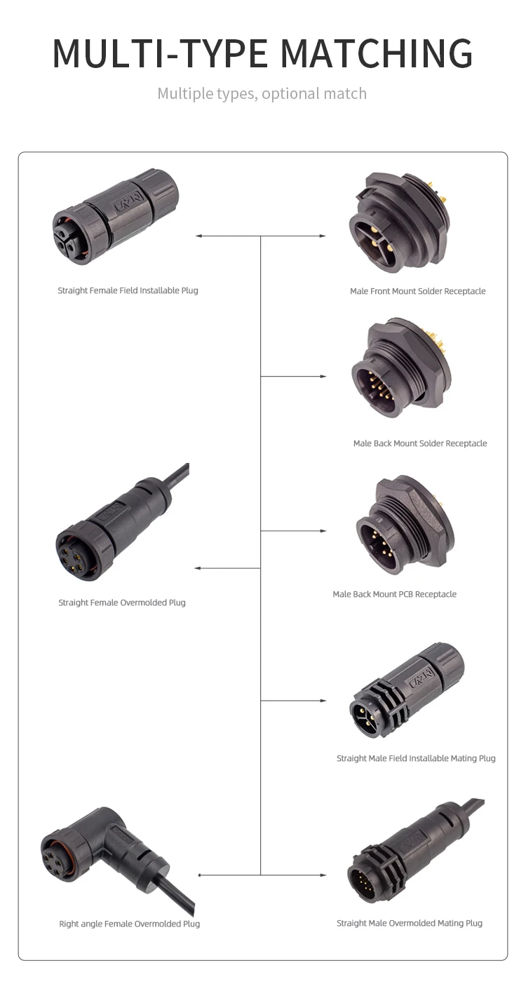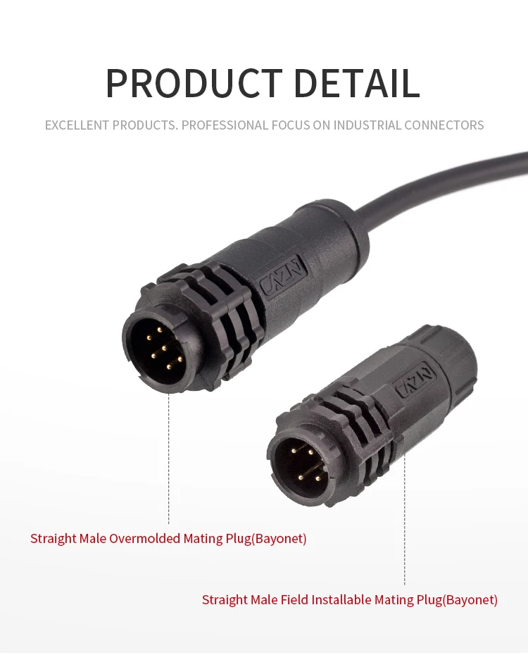 Número de pin: 21-18 pinesIP67/IP68 resistente al agua E13 conector macho y hembra tipo bayoneta 2-18 pines enchufe de acoplamiento sobremoldeadoGrado impermeable: IP67/IP68