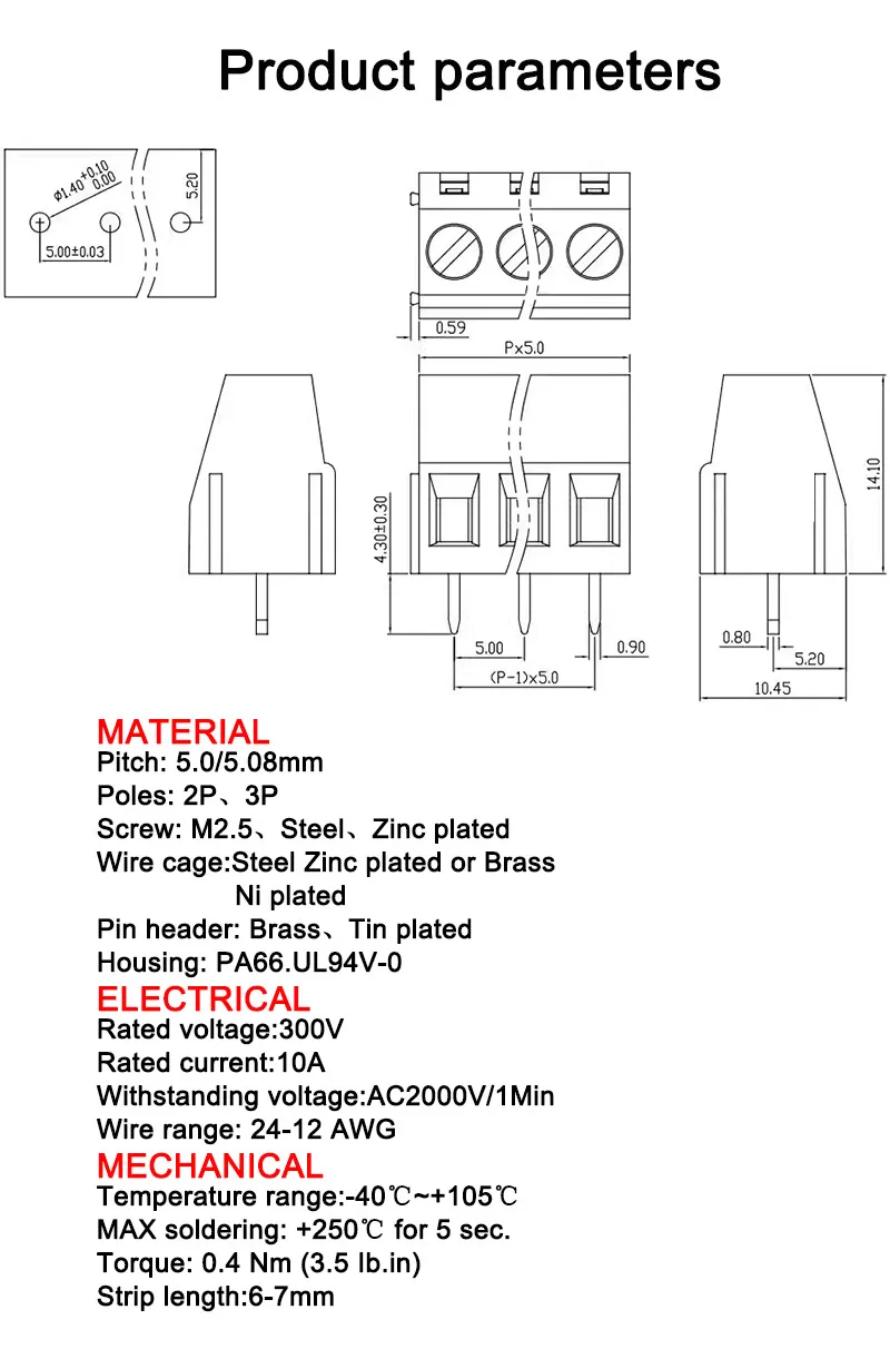 Comprar Conector de bloque de terminales de tornillo PCB, 100 piezas DG/KF128, 5,0mm/5,08, terminales de 3 pines, 380V, 10A