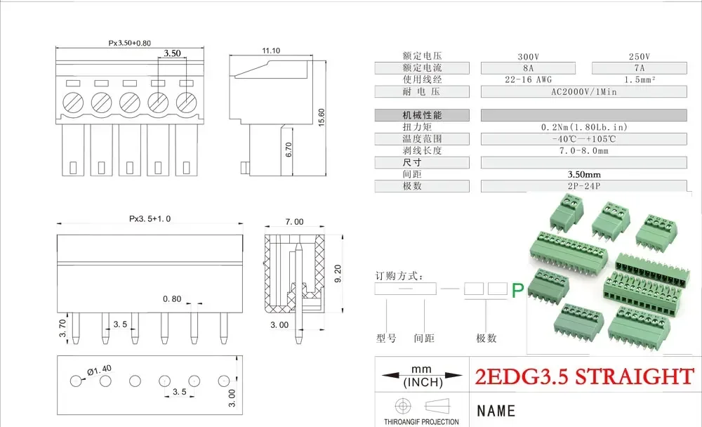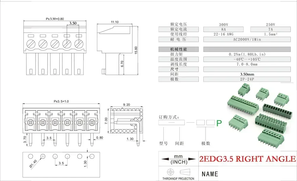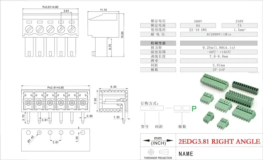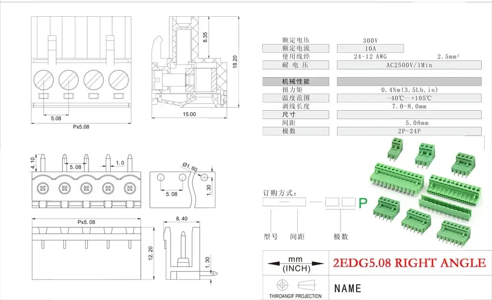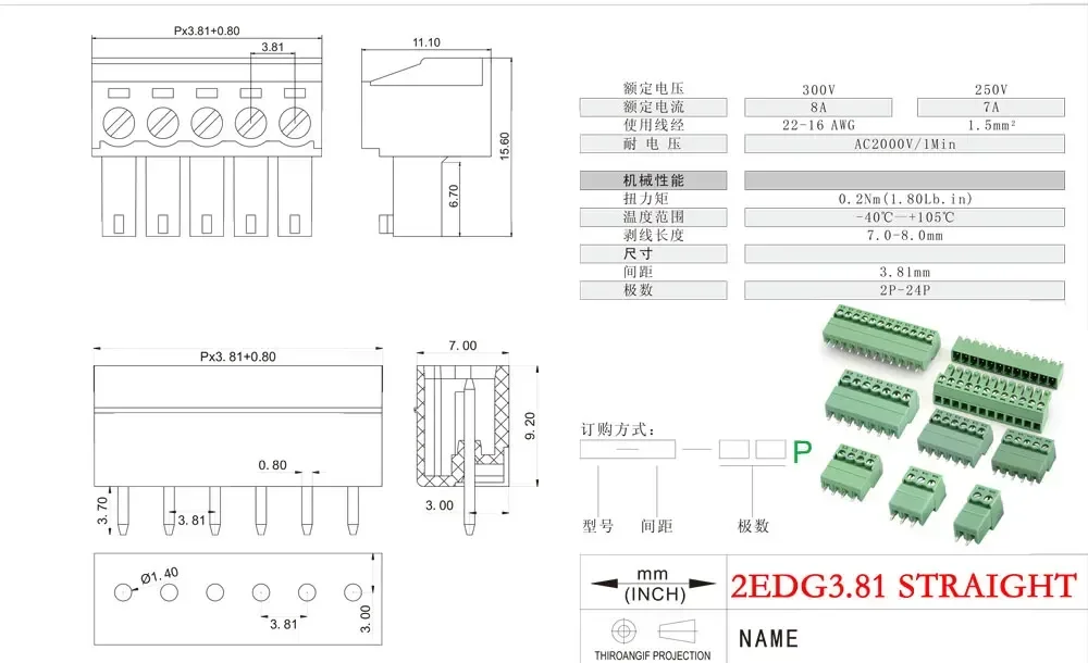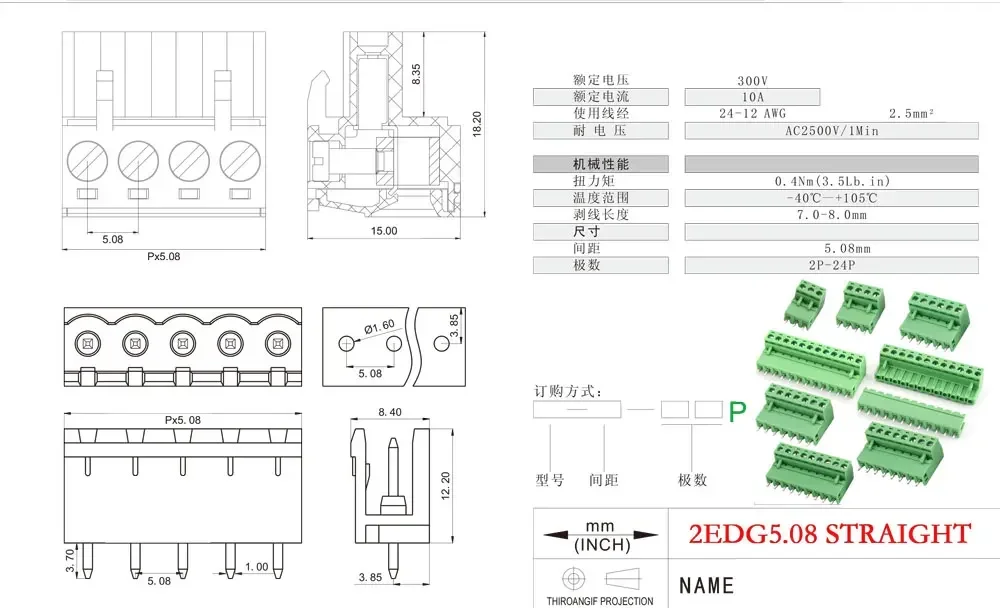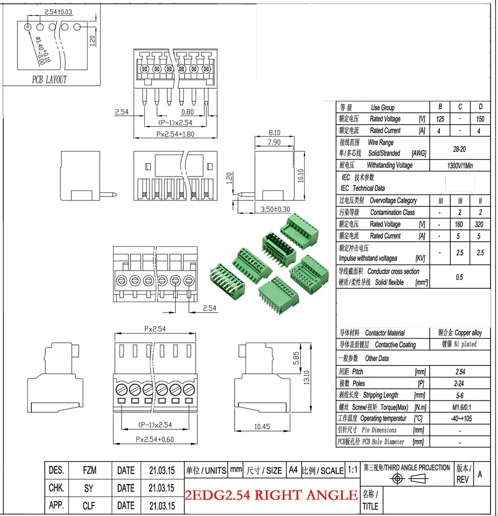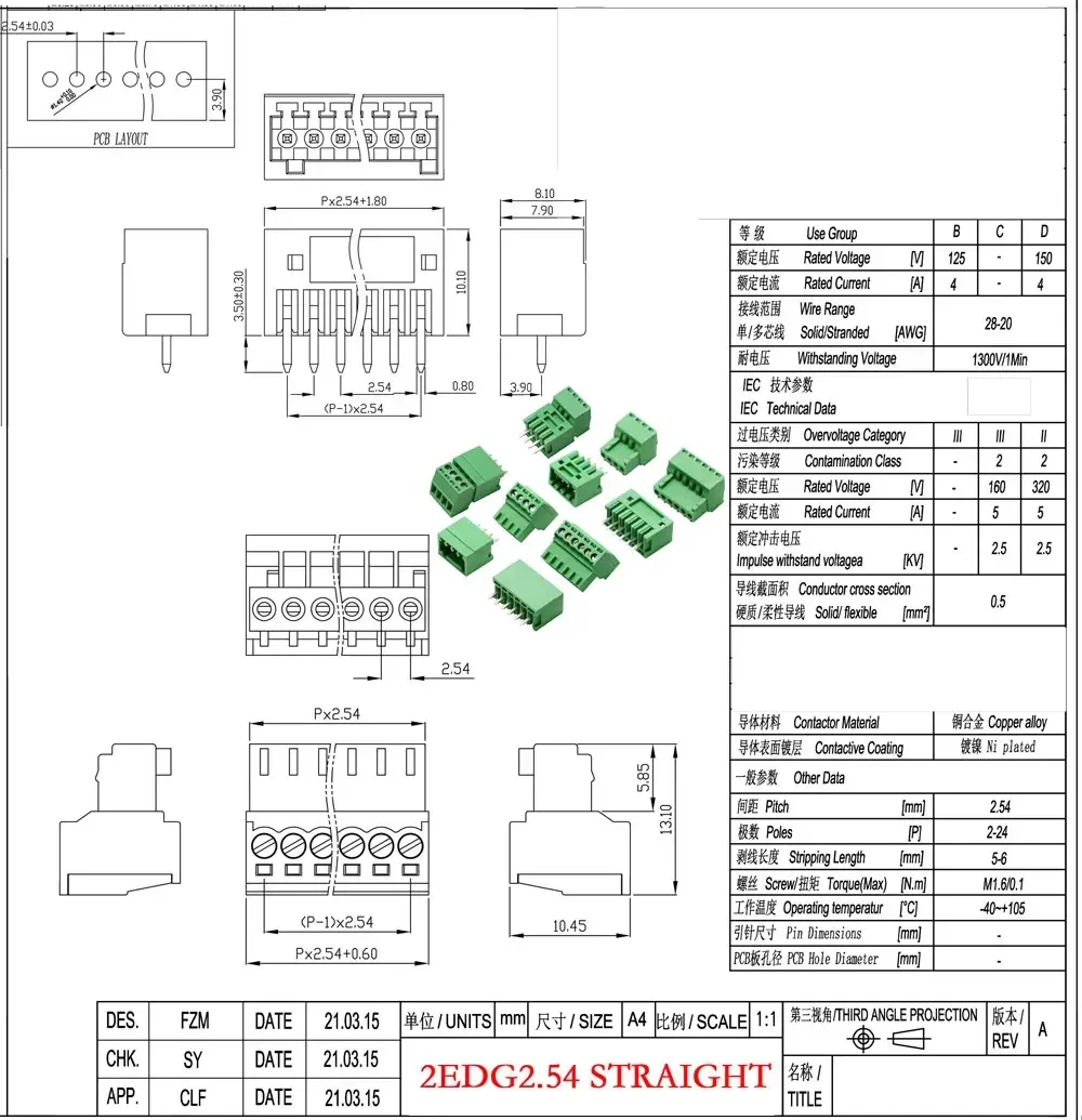 Conector de bloque de terminales de tornillo PCB 2,54mm 3,5mm 3,81mm 5,08mm 2-16 pines macho hembra cable de cabecera de Pin 15EDG KF2EDG