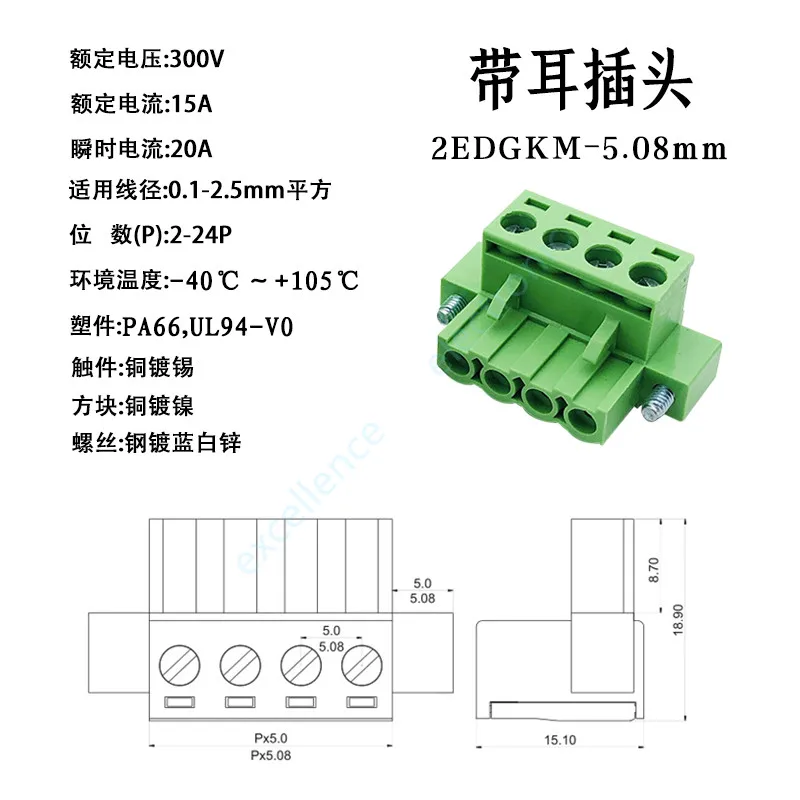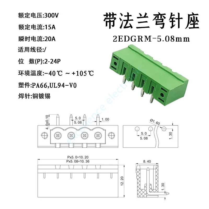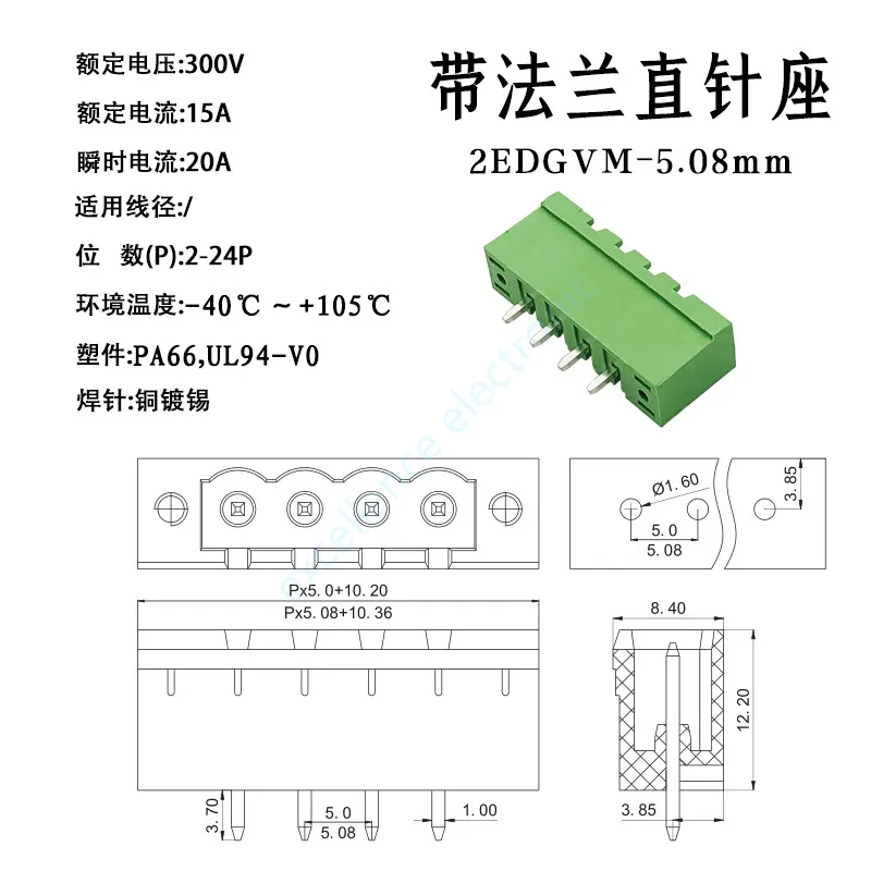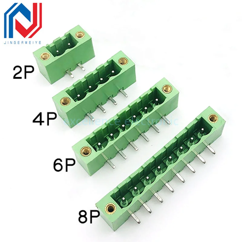Comprar Conector de bloque de terminales de tornillo PCB enchufable, 2 juegos, 2 pines, 3 pines, 4 pines, 5 pines, 5,08 Pines, macho, hembra, aguja curva recta, brida blanca, EDGKM, 6/7mm