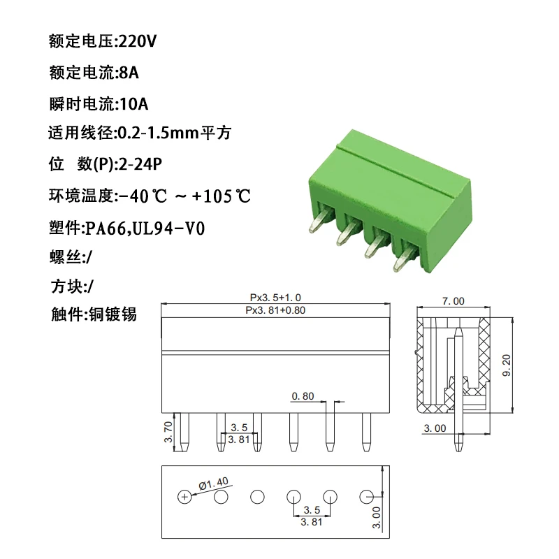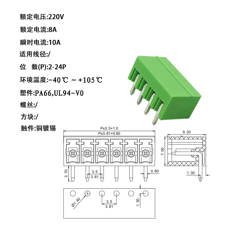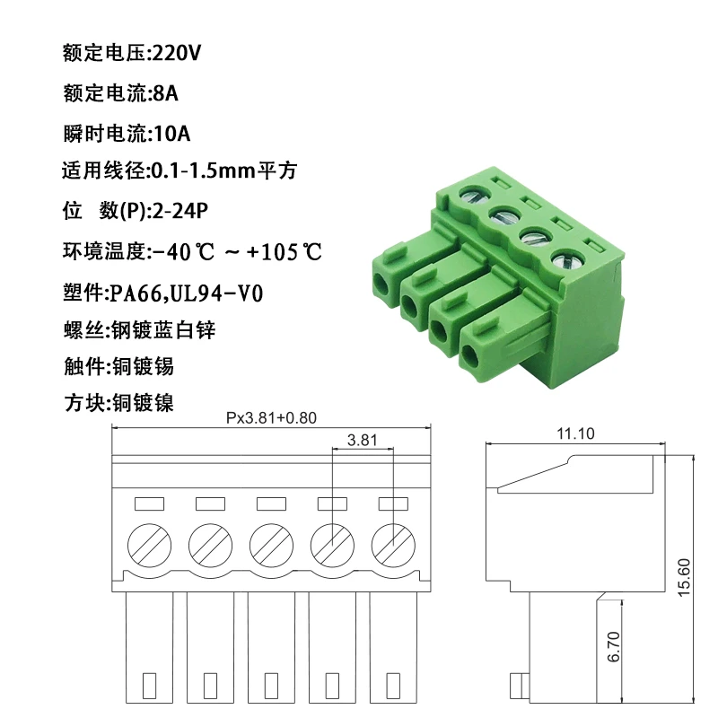 Comprar Conector de bloque de terminales de tornillo PCB, enchufe de cabezal de PIN, 15EDG, 3,81 MM, 3,5 MM, KF2EDG, 2/3/4/5/6/7/8P, 10 Uds.