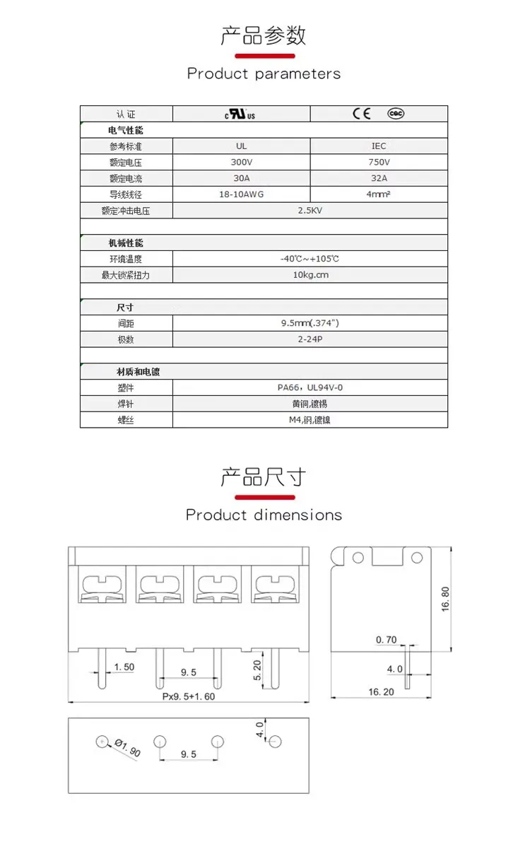 Comprar Conector de bloque de terminales de tornillo PCB, paso de 9,5 MM, 2 pines, HB9500, 2/5 piezas, HB9500-2p/3p/4p/5p/6p/7p/8p/9P