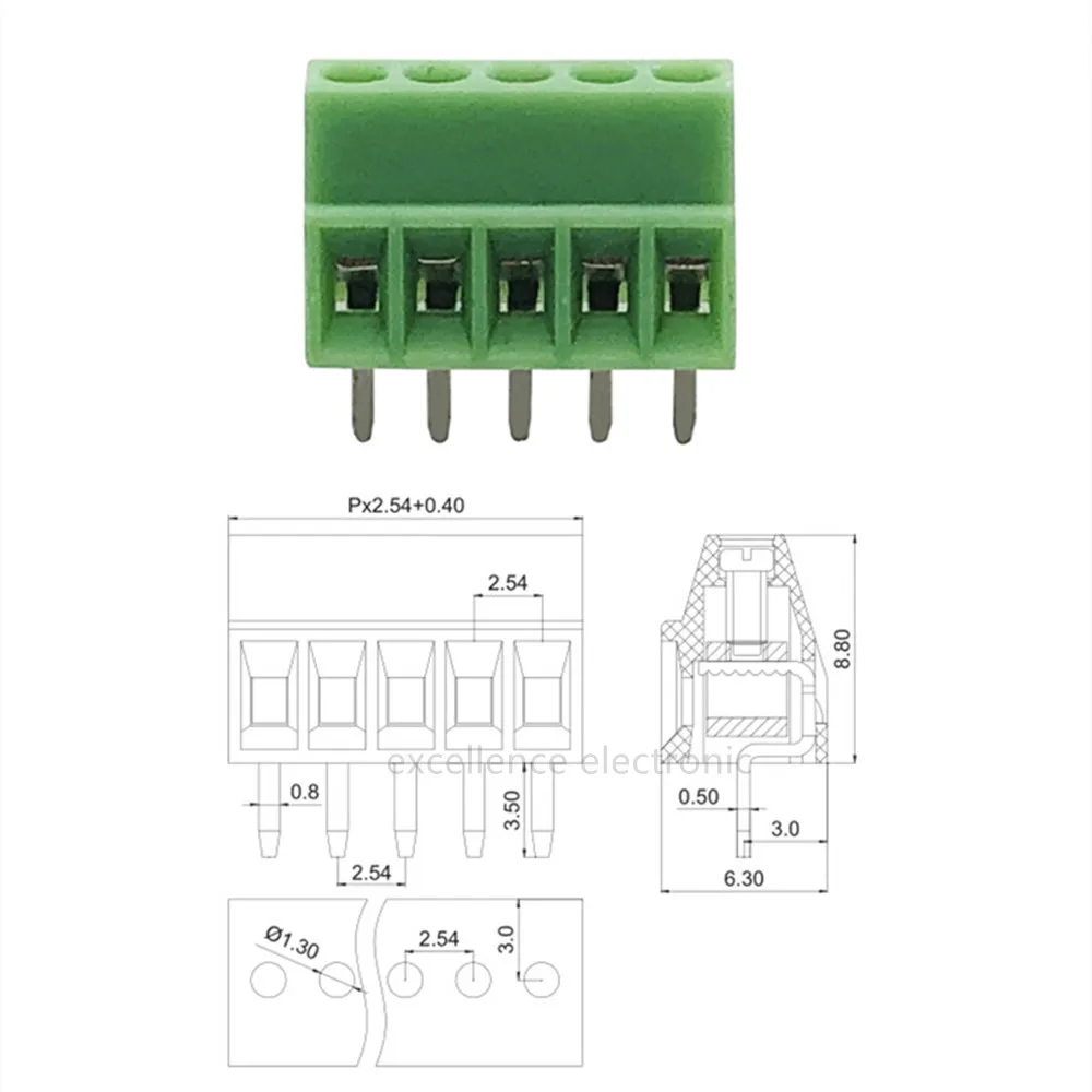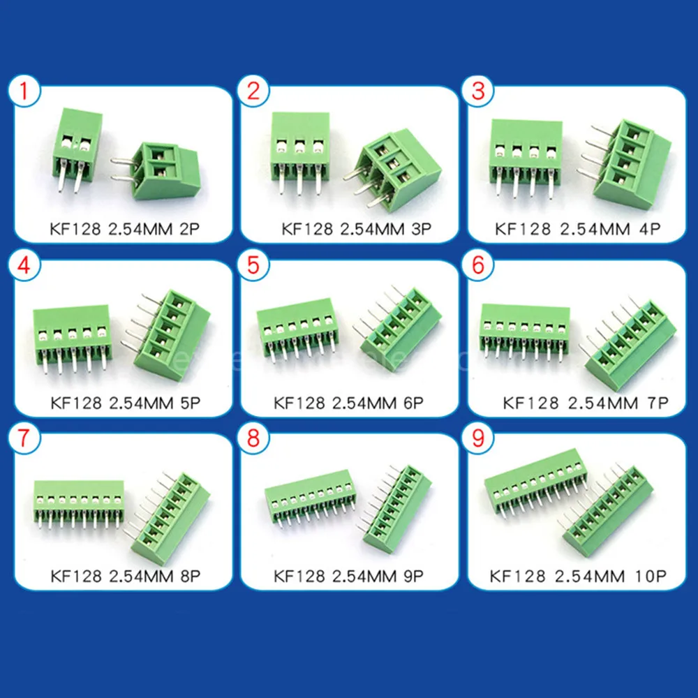 Comprar Conector de bloque de terminales de tornillo PCB de paso, Kit de montaje para cables 2P, 3P, 4P, 5P, 6P, 7P, 8P, 9P, 10P, 12, 30 piezas G/KF128, 2,54mm, 150V, 6A P