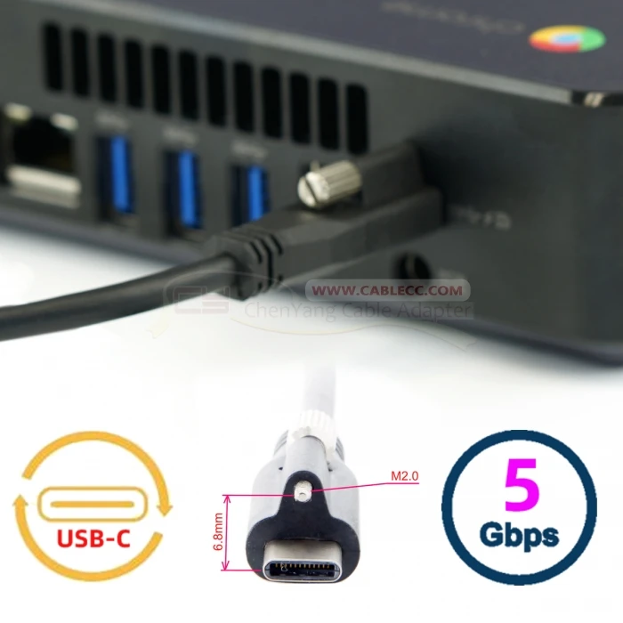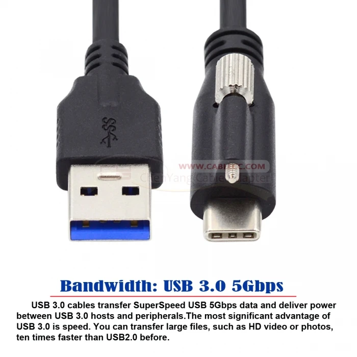 Conector de bloqueo USB 3,1 tipo C a cable de datos estándar USB3.0 para cámara con tornillo de montaje en panel.