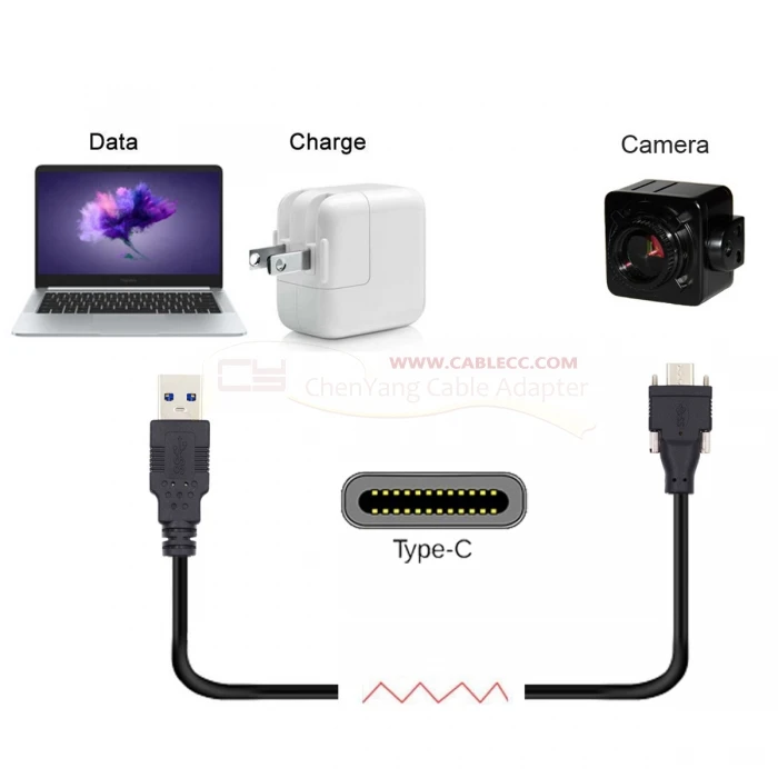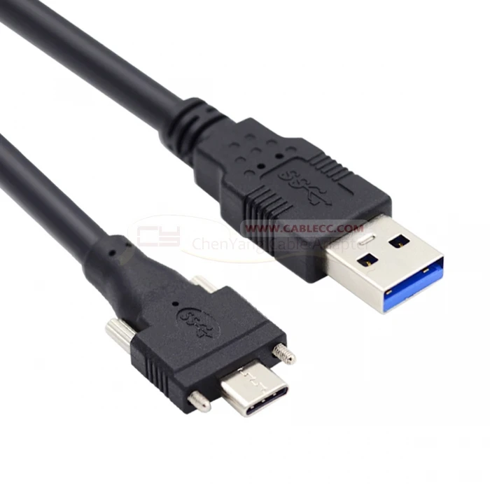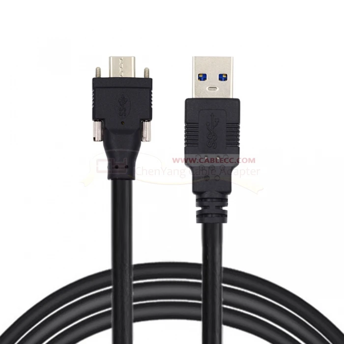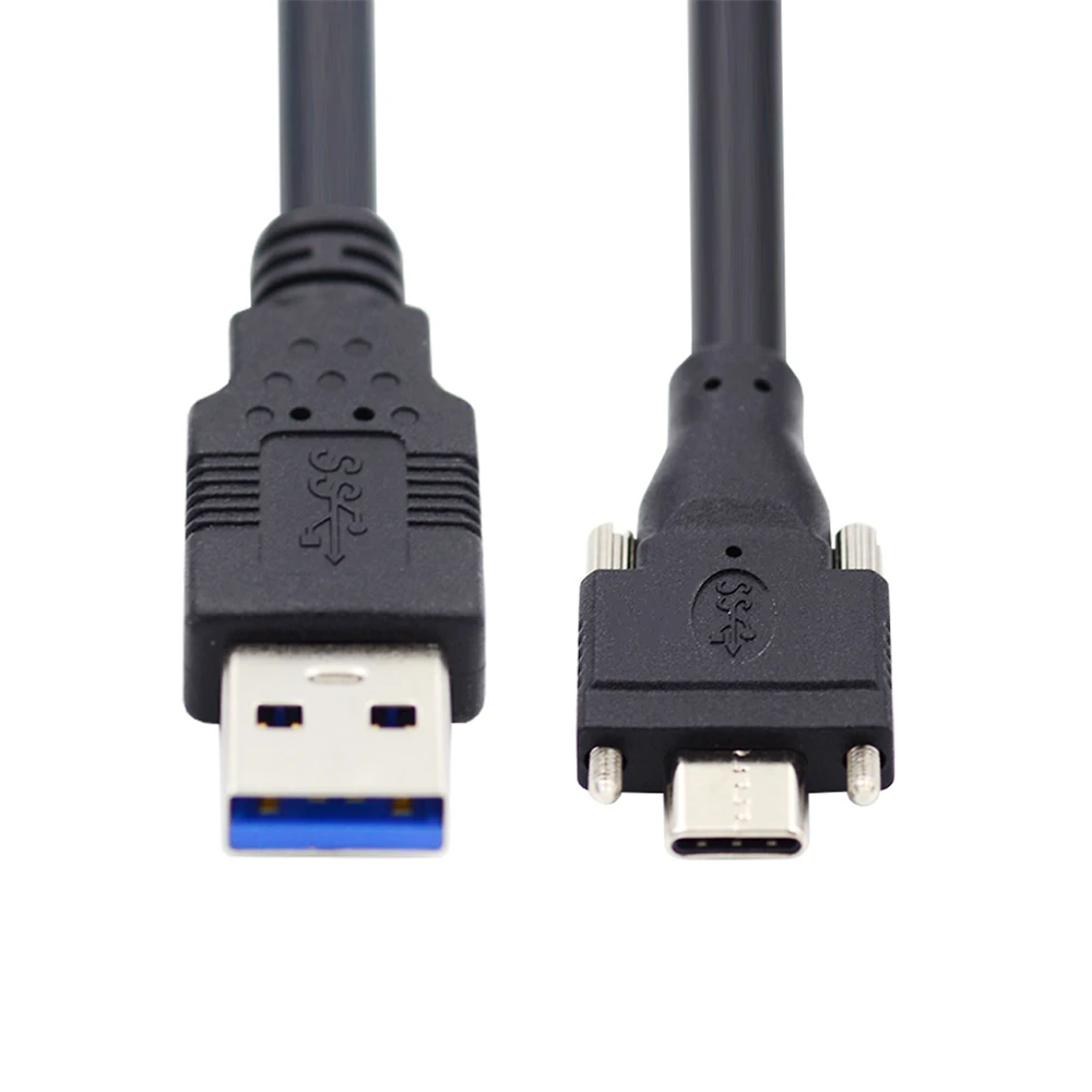 Conector de bloqueo dual USB 3,1 tipo C de 5 metros a cable de datos USB3.0 estándar para cámara con tornillo de montaje en panel