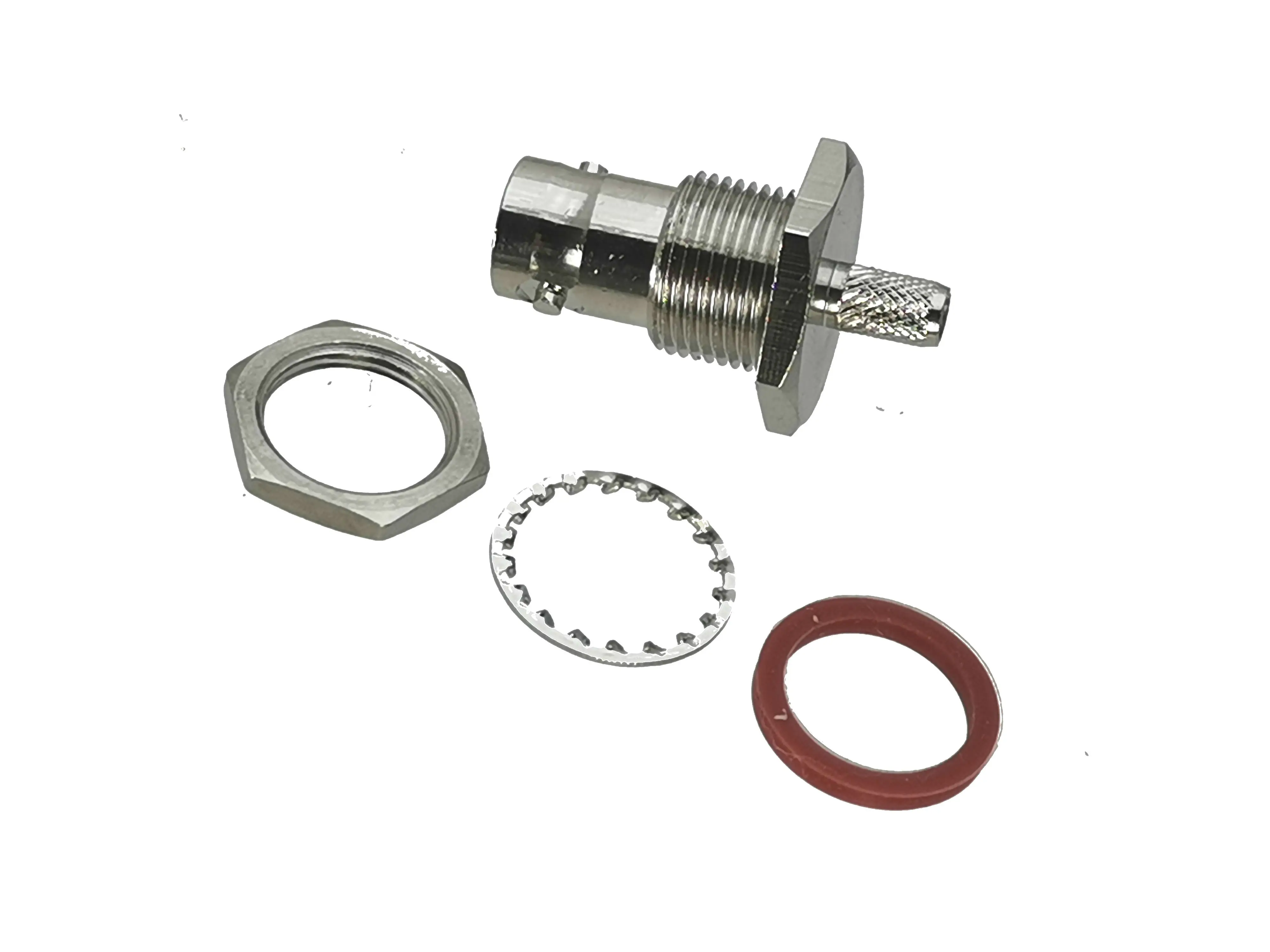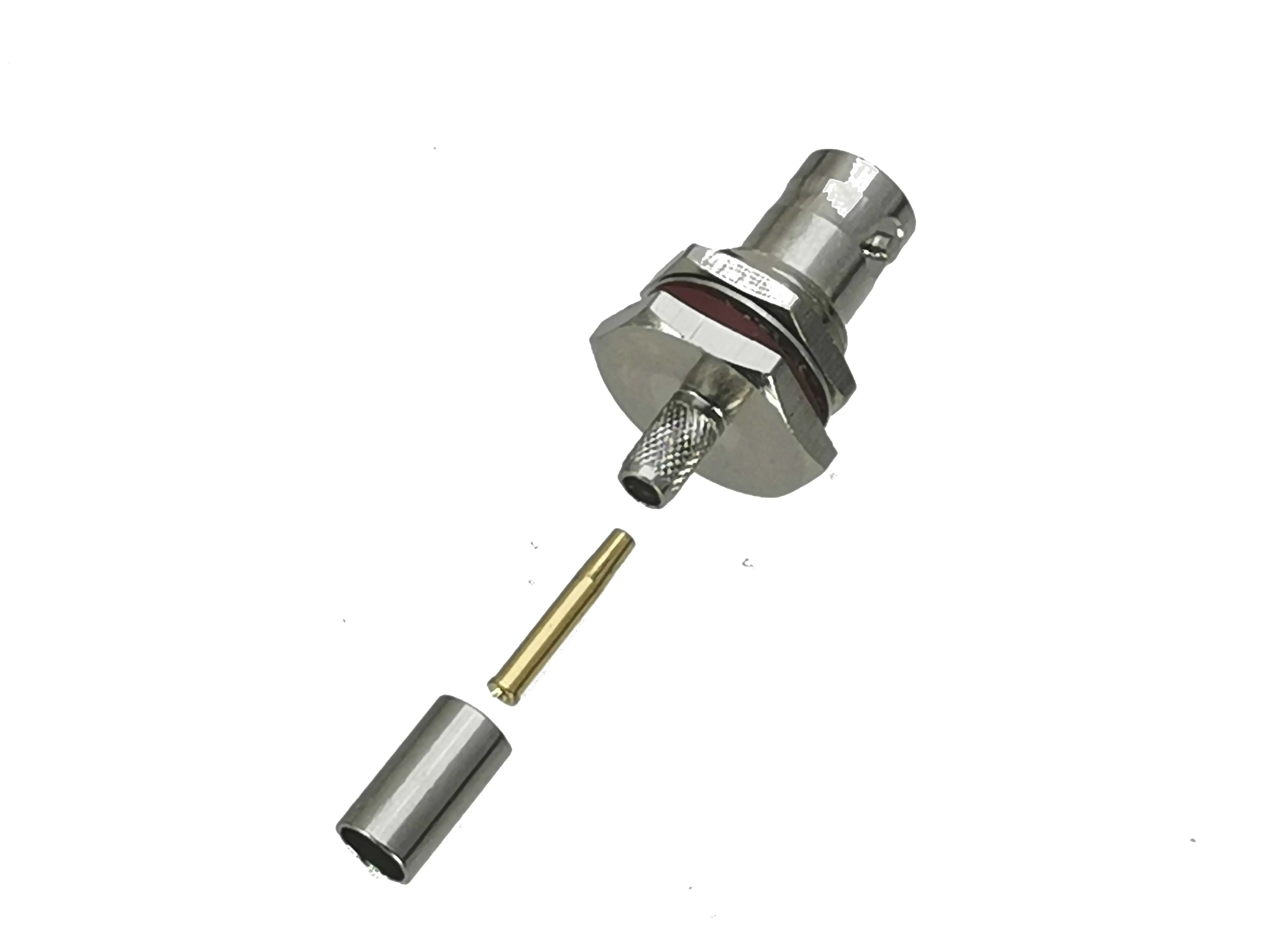Comprar Conector BNC hembra para mampara, Conector de 1 pieza, tuerca, engarce para RG58, RG142, LMR195, RG400, Cable de 50ohm, adaptador Coaxial de alta calidad