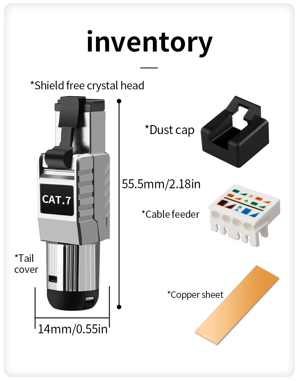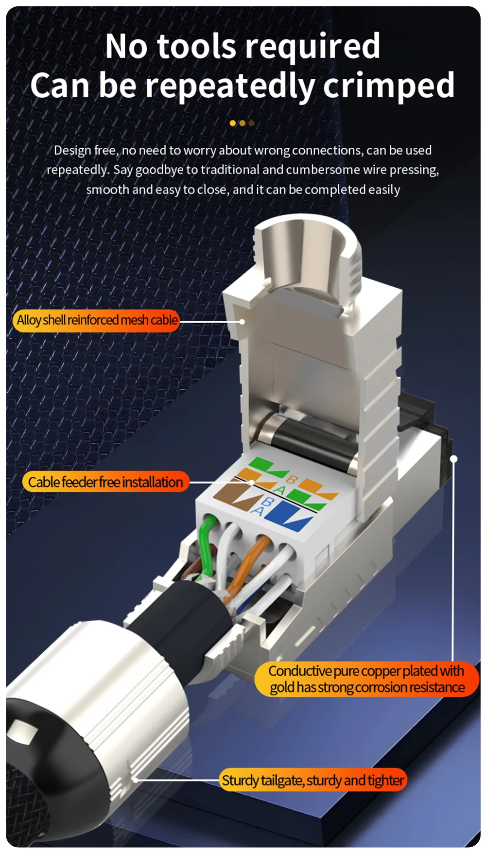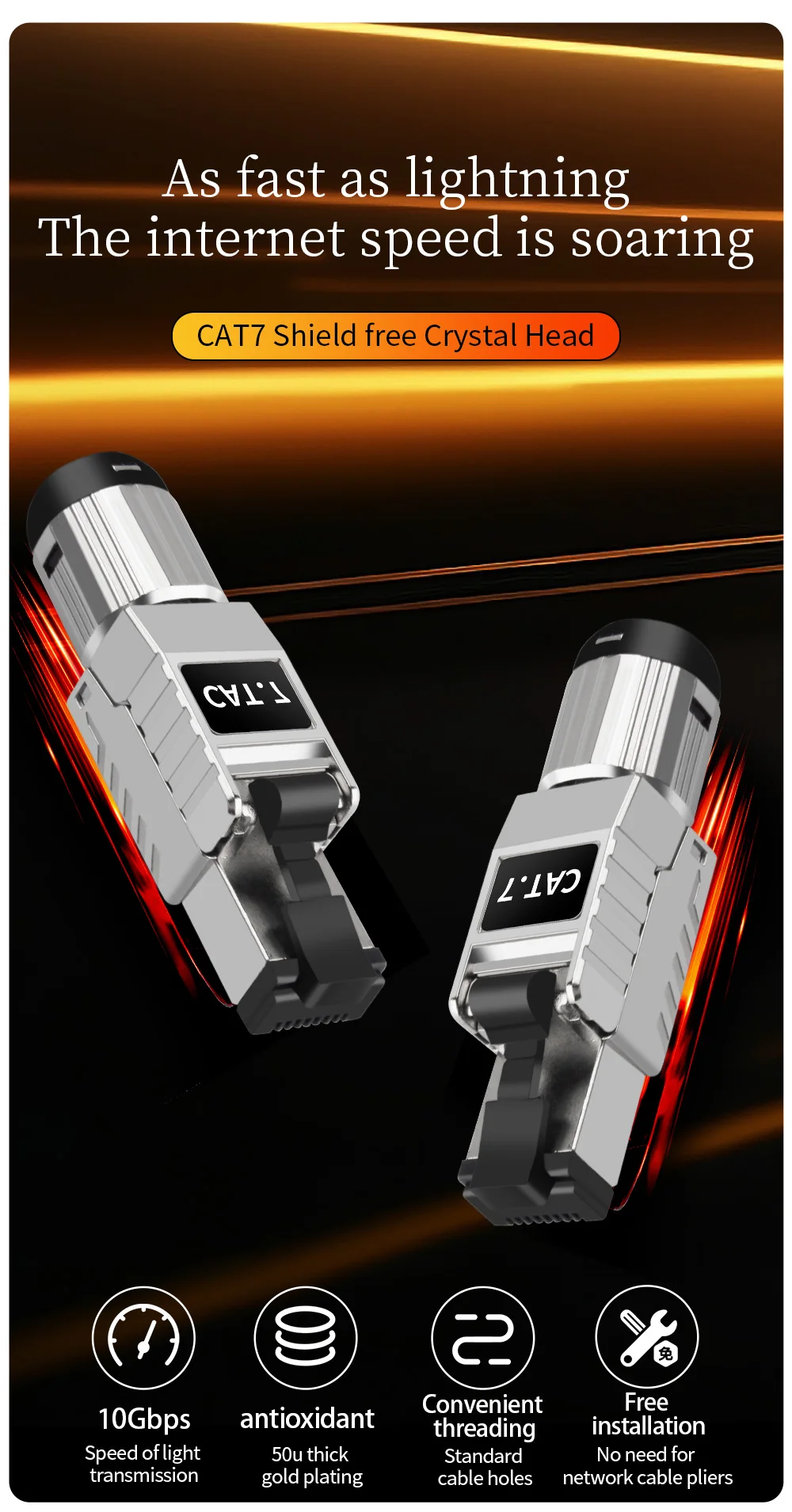 Comprar Conector de cabeza de cristal Modular, herramienta de conexión de Cable de alta velocidad sin Aleación de 10Gbps 50U, Cat7, Cat6, Cat8, RJ45