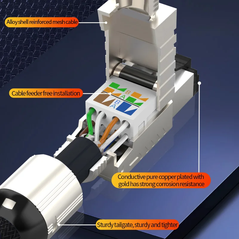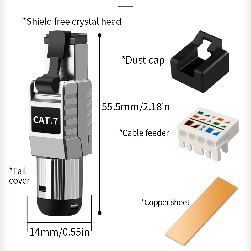 Comprar Conector de cabeza de cristal Modular, herramienta de conexión de Cable de alta velocidad sin Aleación de 10Gbps 50U, Cat7, Cat6, Cat8, RJ45