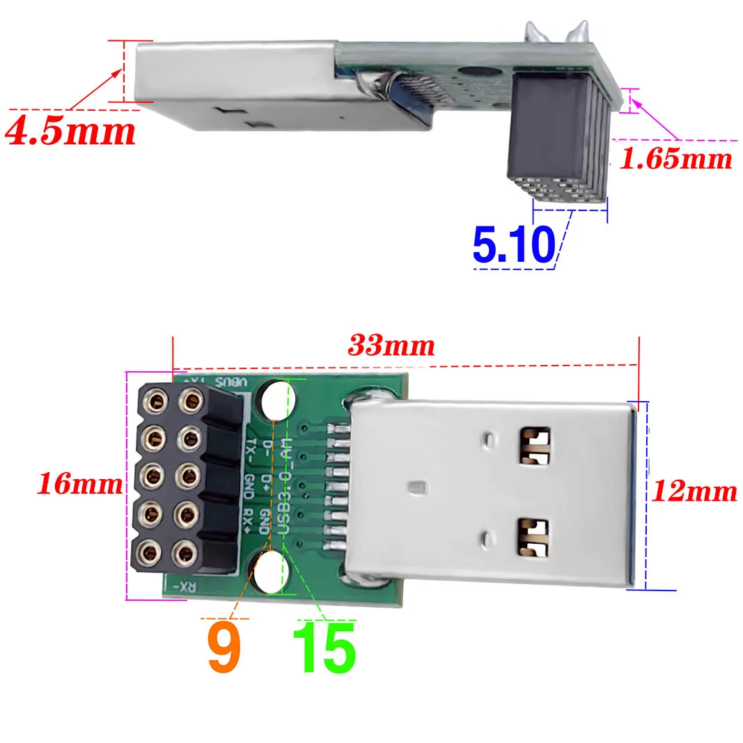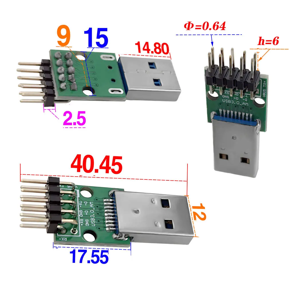 Comprar Conector de cabeza macho Micro USB A, Adaptador convertidor PCB de 2,54mm, placa de ruptura Vertical de 180 grados, 1 piezas