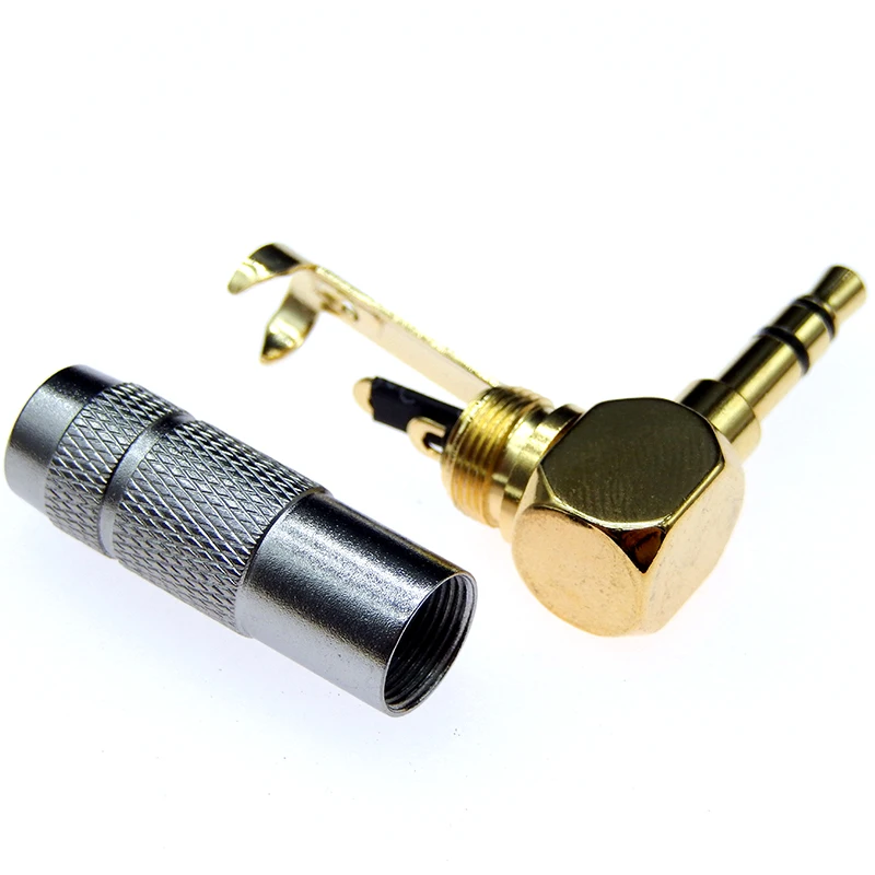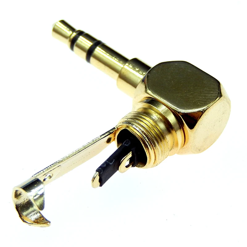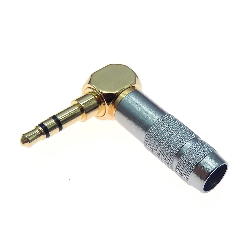 Conector de Cable de 3,5mm, conector de 90 grados, chapado en oro, ángulo recto de 3 polos, alta calidad, enchufe de auriculares DIY, Cable de fijación de hasta 6mm