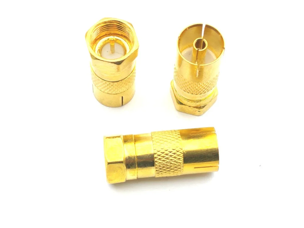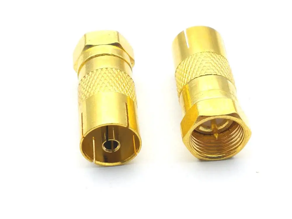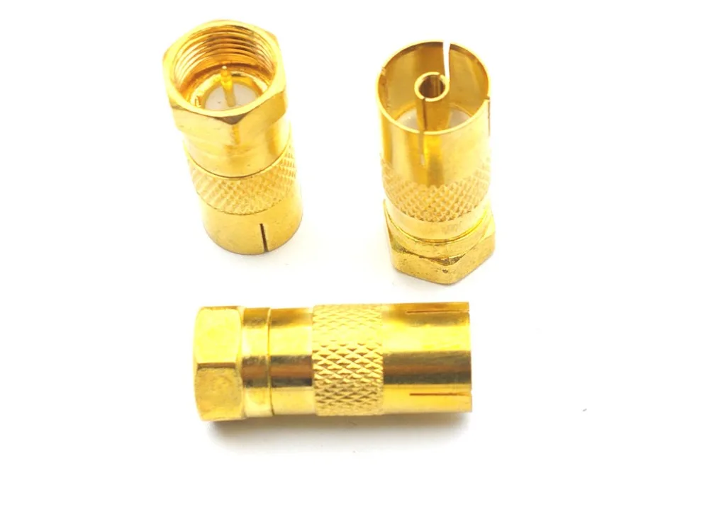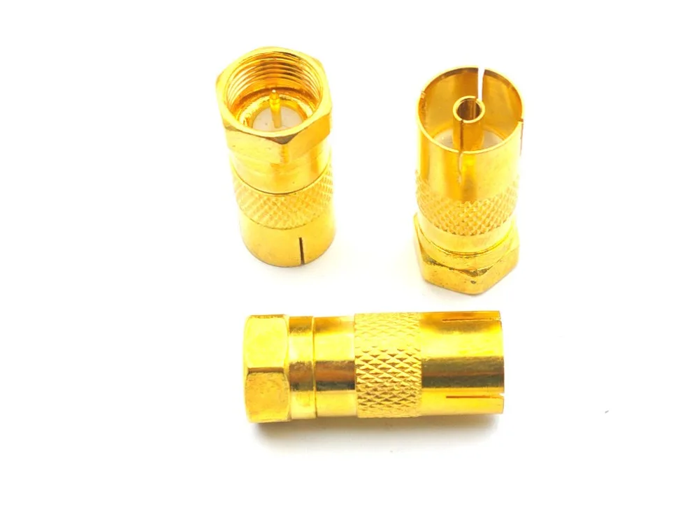 Comprar Conector de Cable de antena de TV, conector macho tipo F chapado en oro a PAL hembra, 50 Uds./100 Uds.