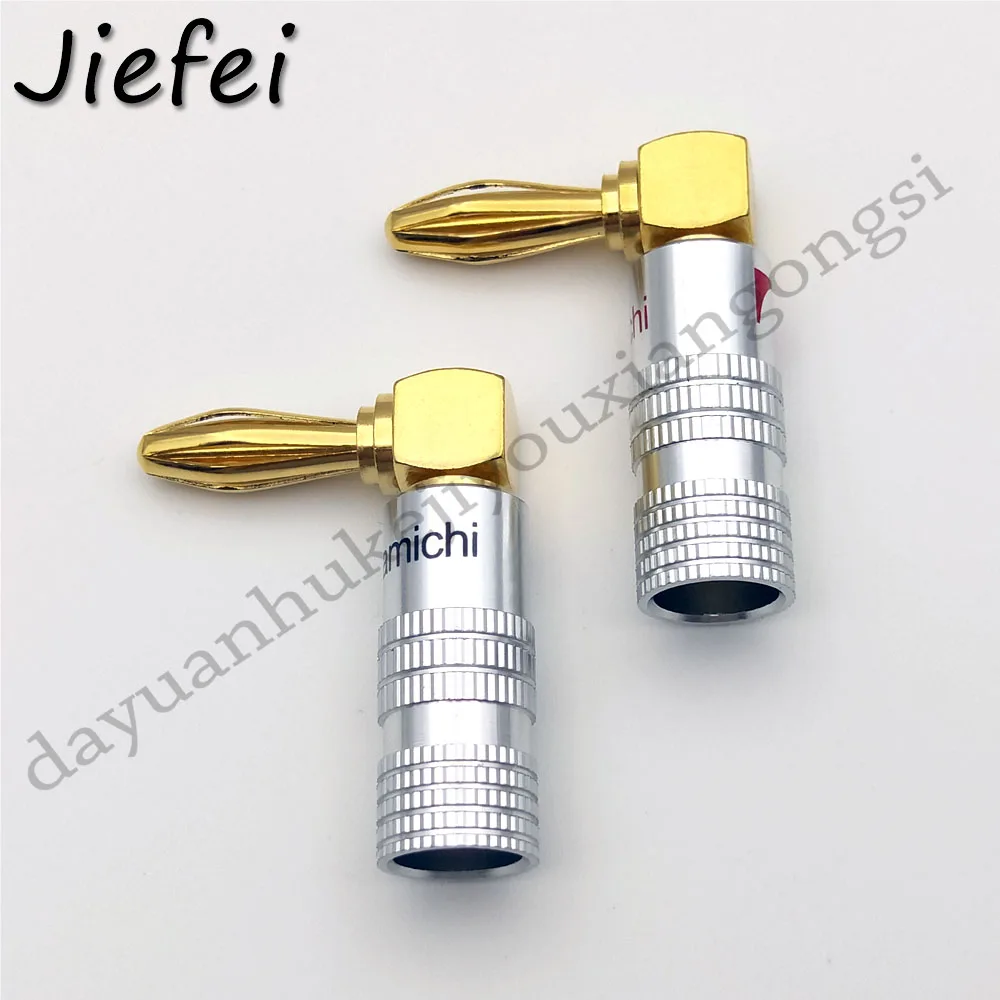 Conector banana de 4mm de ángulo recto de 24K chapado en oro para adaptador de altavoz de vídeo conector de Cable de Audio HiFi