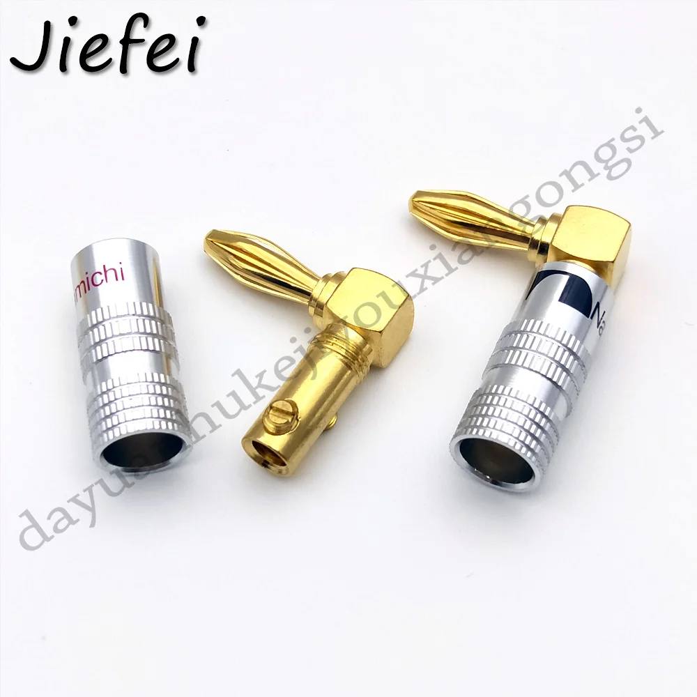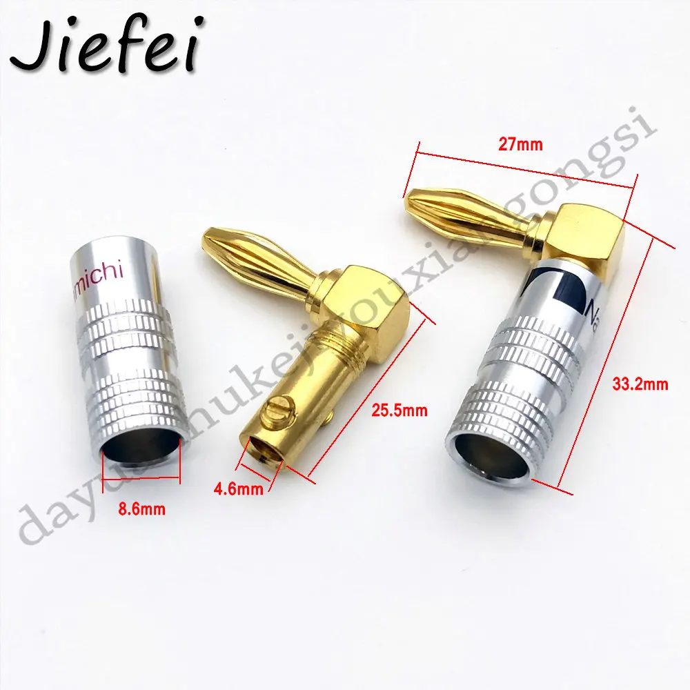 Conector banana de 4mm de ángulo recto de 24K chapado en oro para adaptador de altavoz de vídeo conector de Cable de Audio HiFi