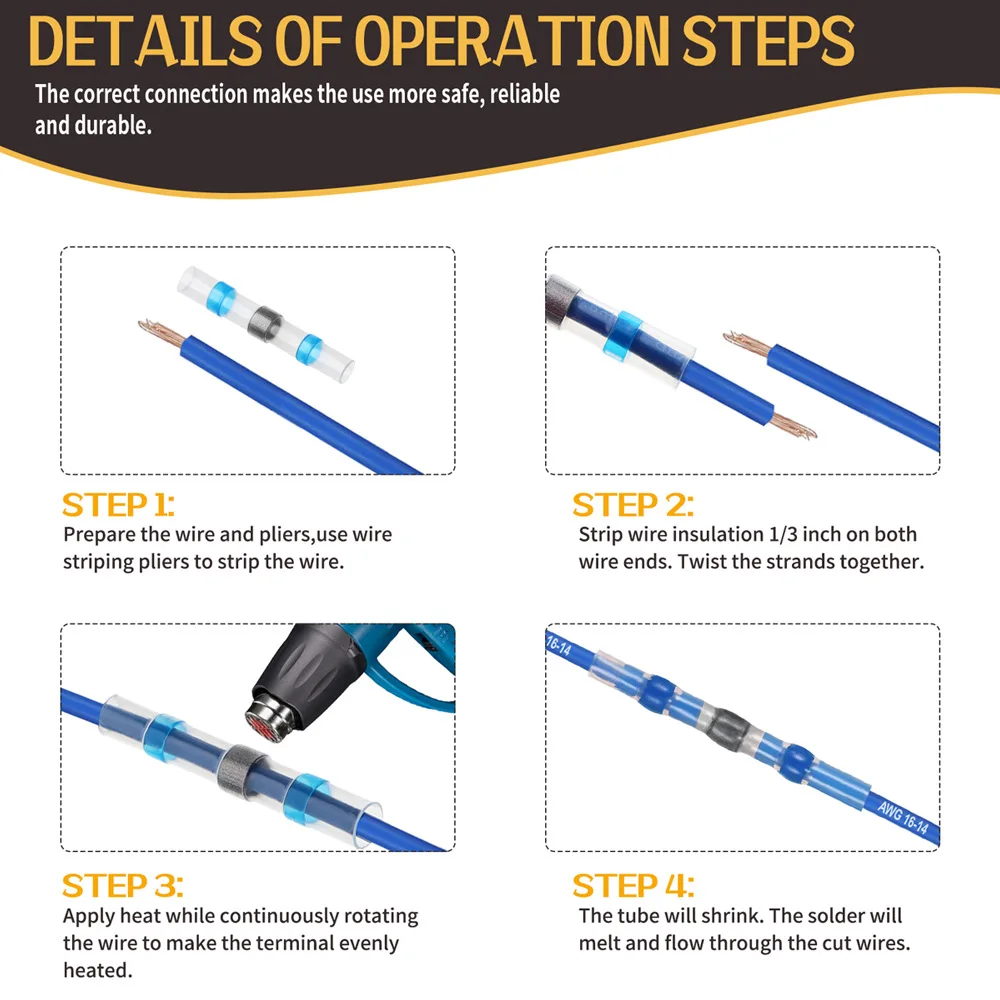 • Resistente al agua: los conectores de cable a tope termorretráctiles para sellos de soldadura son resistentes al agua, lo que los hace perfectos para