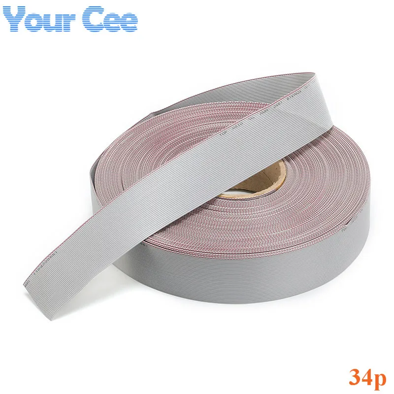 Comprar Conector de Cable de datos de cinta plana gris, 1,27mm, paso de espaciado, 34 Pines, 34 P, AWG28, 300V, aislamiento: 9mils, 34 vías