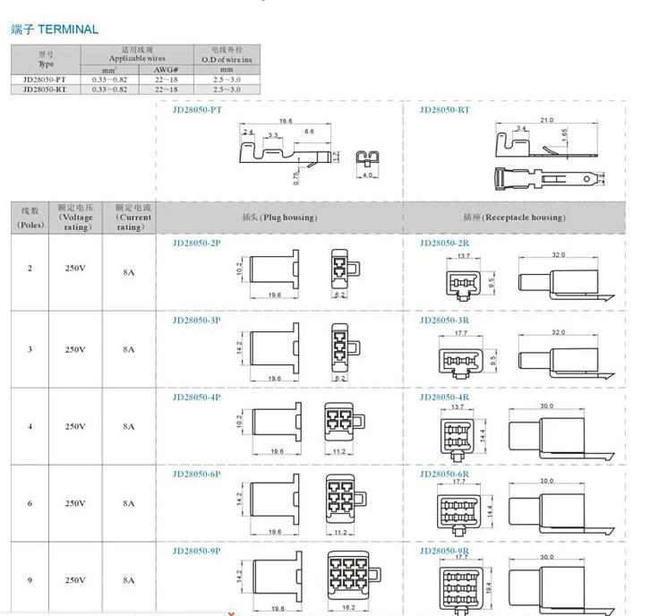 • Terminal de 2,8mm para cables de hasta 2,0mm de diámetro