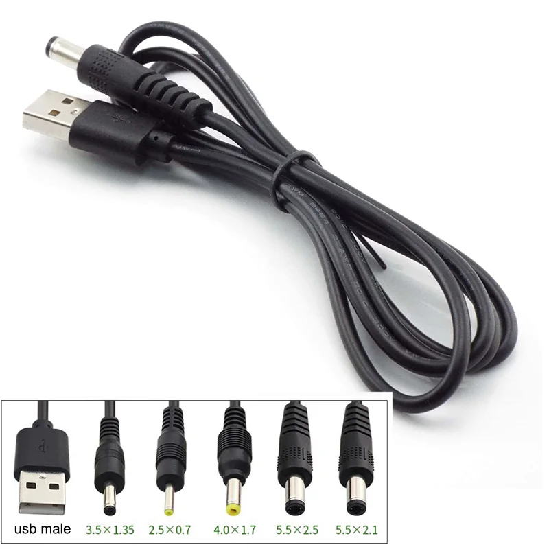 1M USB tipo A macho Jack enchufe a DC 5,5x2,5mm 3,5mm 4,0mm x 1,7 5,5x2,1mm macho fuente de alimentación tipo A cable de extensión cables conectores