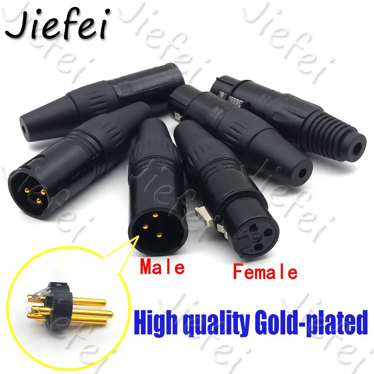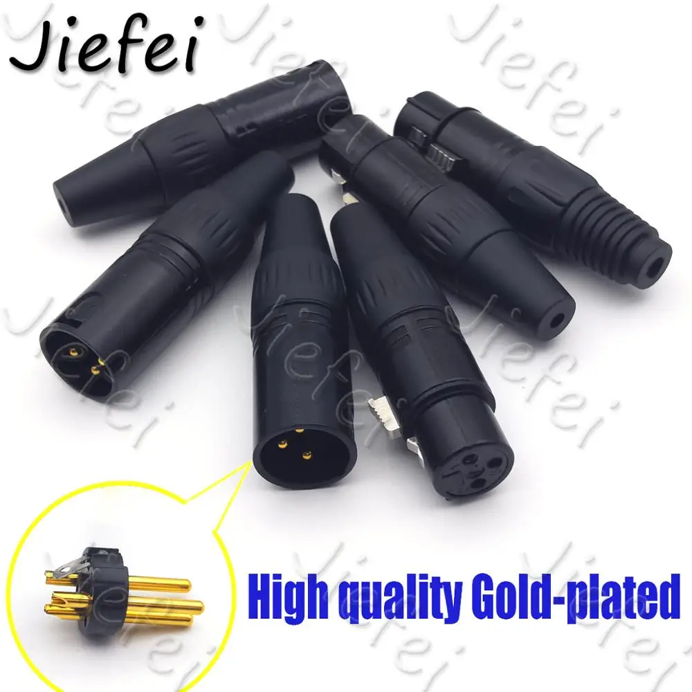 Comprar Conector de Cable de micrófono de Audio, accesorio de alta calidad chapado en oro, 3 pines, negro, macho + hembra, adaptador XLR, 20 juegos