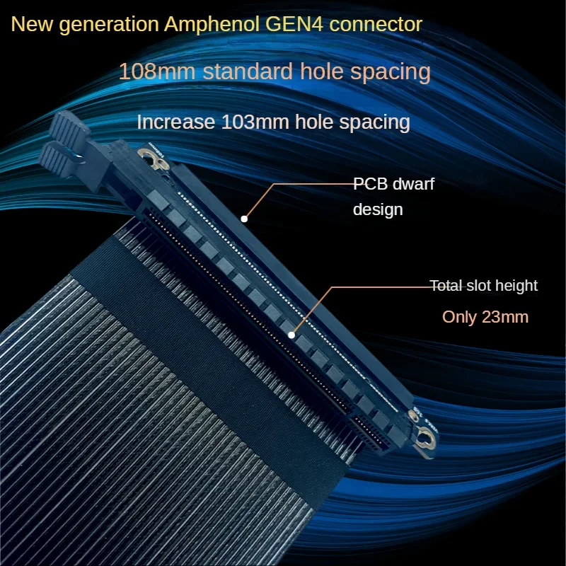 1. Adopta una nueva generación de conectores Amphenol GEN4, las hebillas de los aviones están firmemente instaladas y los cables plateados importados alcanzan los 64GBS, que cumplen con el estándar de transmisión PCIE 4,0.