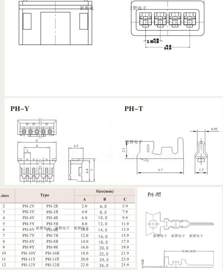 Comprar Conector de Cable PH2.0 de 2,0mm, Conector de PH macho y hembra, acoplamiento aéreo JST para Cable de carga de batería, bricolaje, 10 juegos