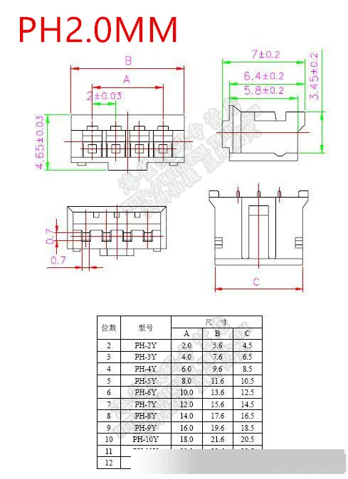 Conector de cable PH2.0, Terminal de paso de 2,0 MM, 50 piezas, 2/3/4/5/6/7/8/9/10/11/12/13/14/15/16p carcasa de plástico para enchufe PCB