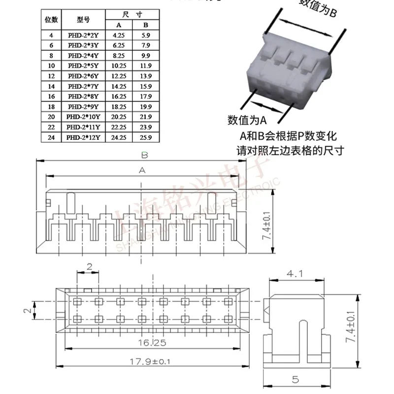 Conector de Cable PHD2.0 de 2,0 MM, 5 piezas, 2x2/3/4/5/6/7/8/9/10/11/12/13/14/15/16/20 pines enchufe hembra de paso, 10cm, 20cm, 30cm