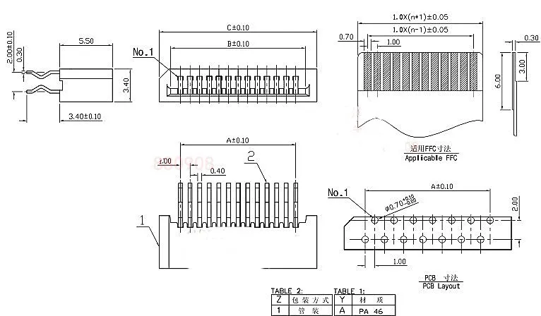 Comprar Conector de Cable plano Flexible, conector FPC/FFC LCD de 1,0mm, doble fila DIP, tipo de Pin recto 4, 6, 8, 10, 12, 14, 18, 20, 22, 24, 30 Pines, 10 Uds.