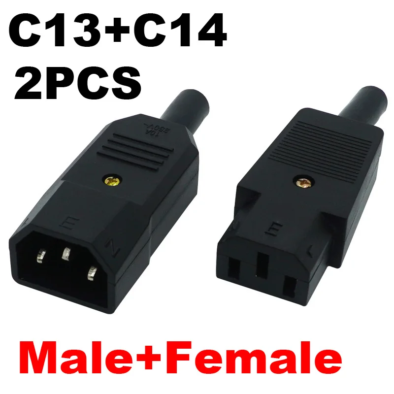 Comprar Conector de Cable recto IEC320, 2 piezas, C13, C14, 10A, 250V, Conector de acoplamiento macho hembra, conector de alimentación recargable, enchufe de CA de 3 pines