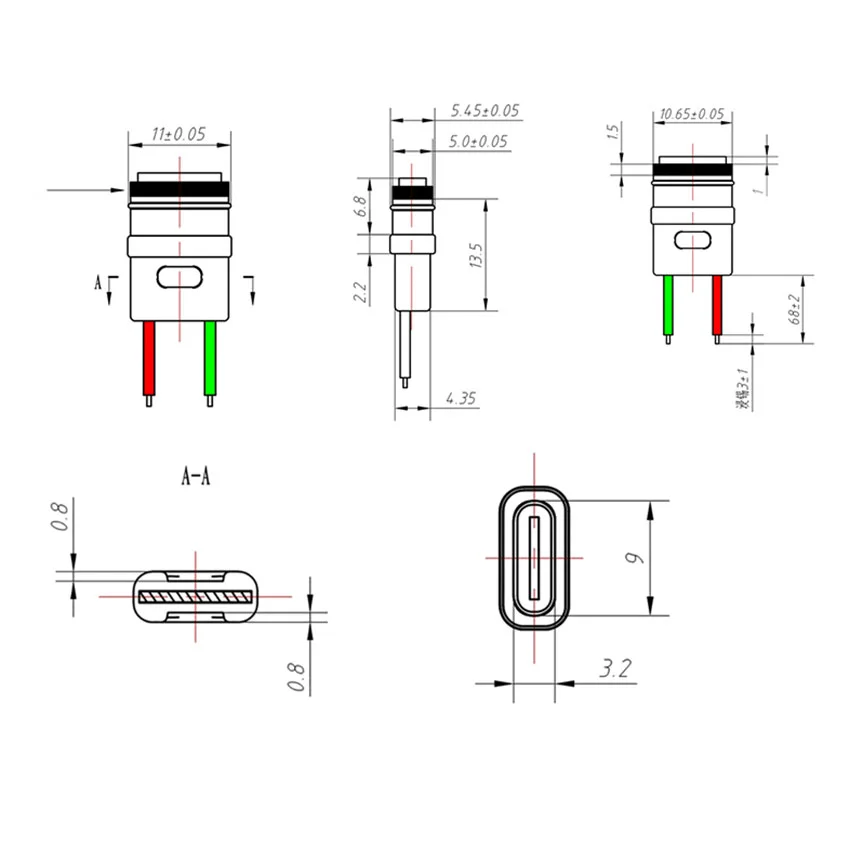 Para IPX7 tipo C conector impermeable Cable de soldadura enchufe hembra de alta corriente de carga rápida tipo C Puerto hembra conector de carga