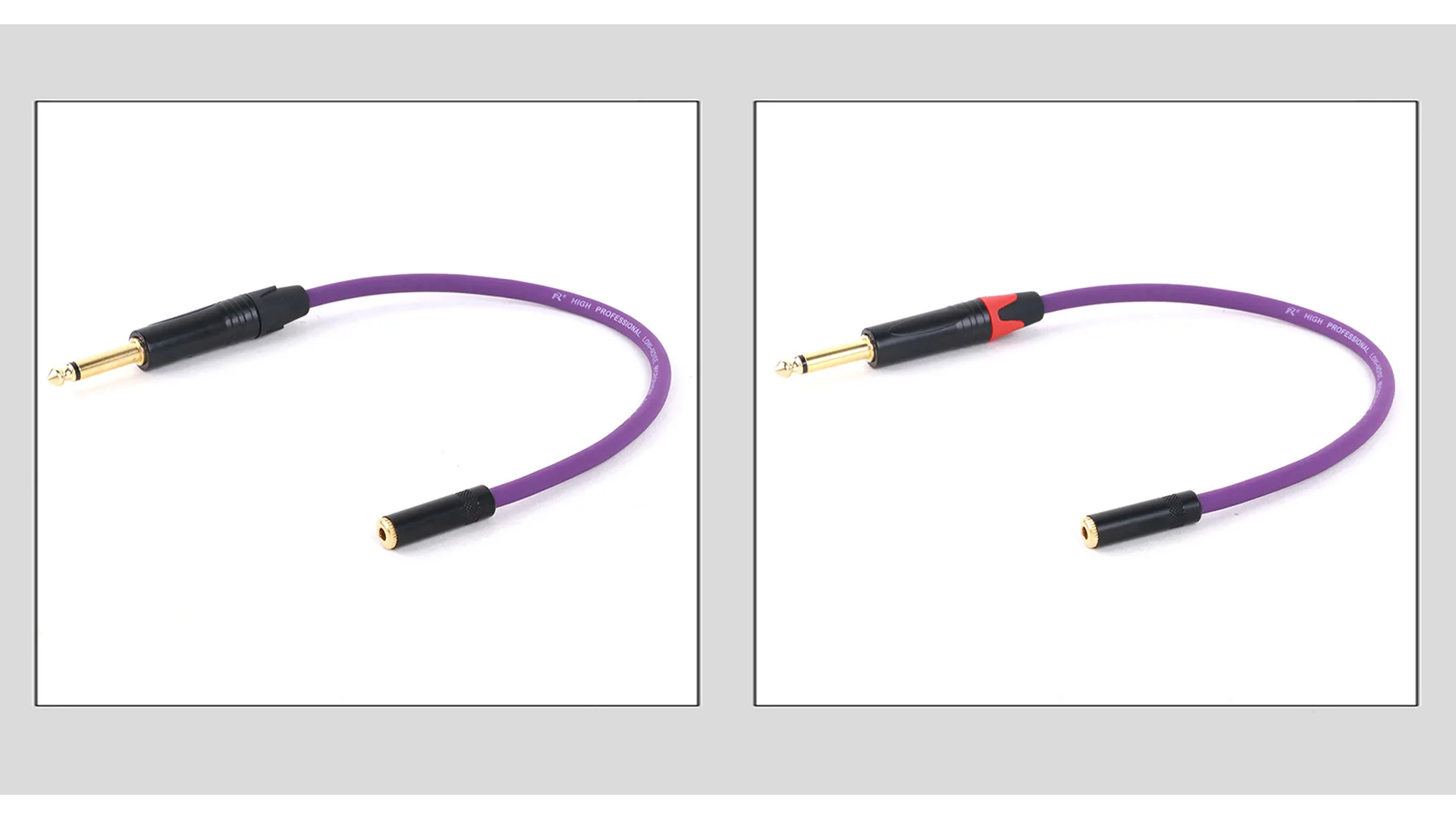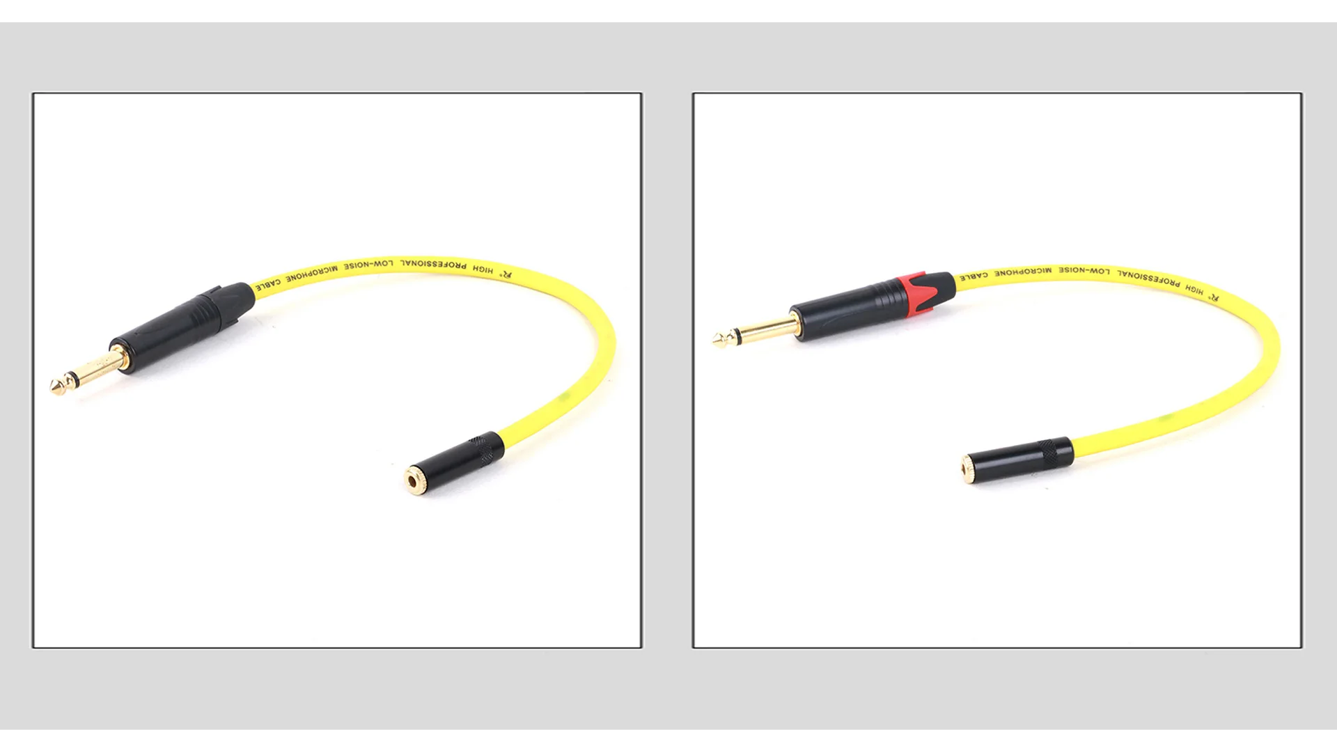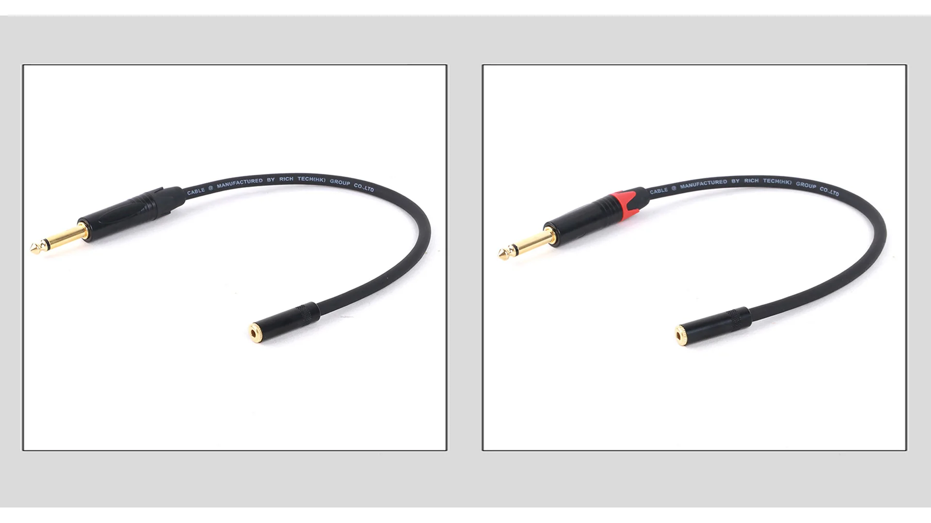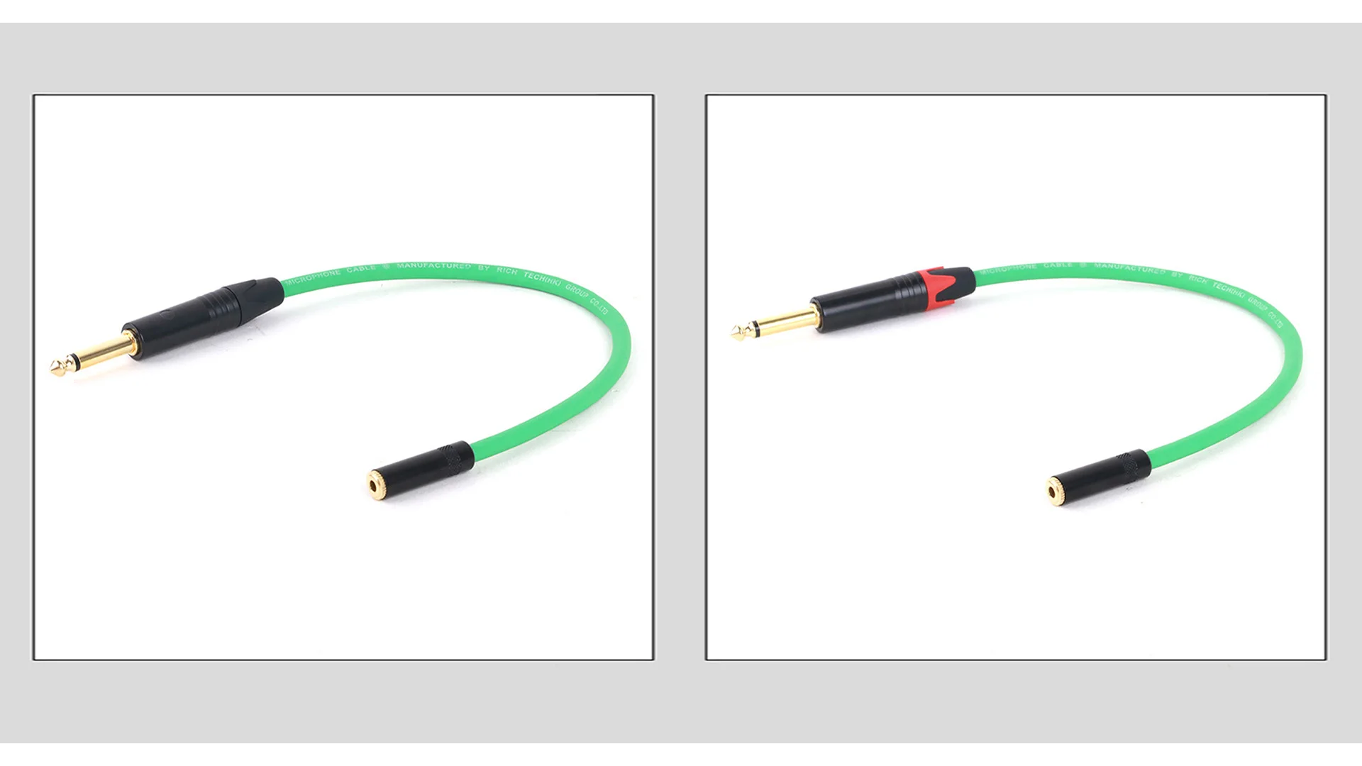 Conector macho mono de 5,6mm a hembra estéreo de 3,5mm con conectores coloridos + negros que proporcionan un sonido nítido y de primera línea