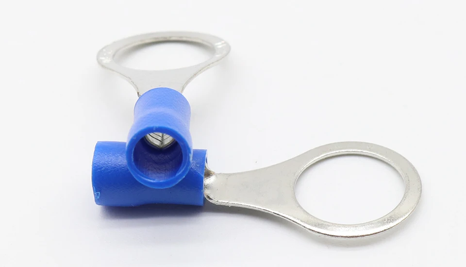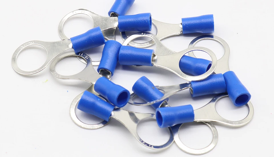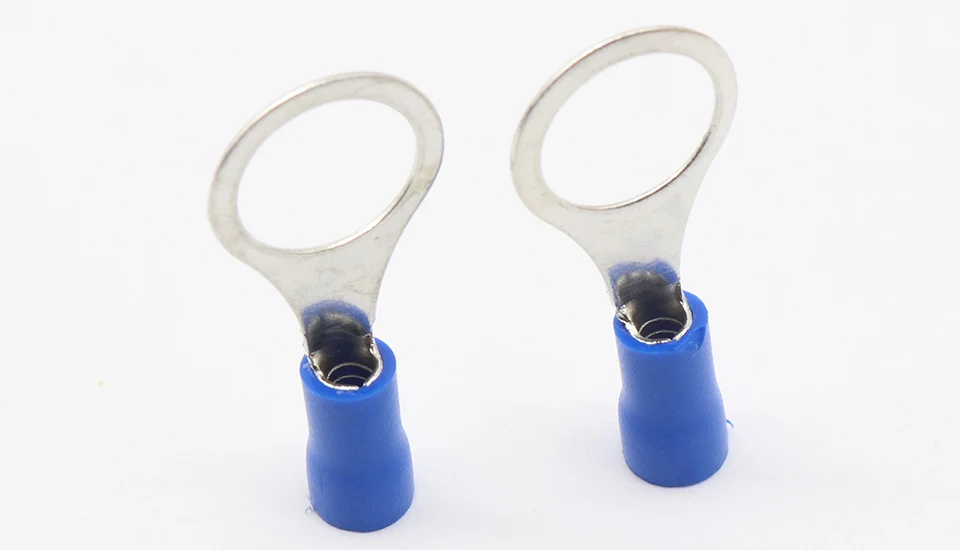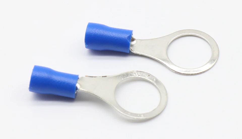 Comprar Conector de Cable de terminal aislado de anillo azul, 1,5-2,5mm, Terminal de crimpado de cable, 100 unids/paquete, RV2-10, RV