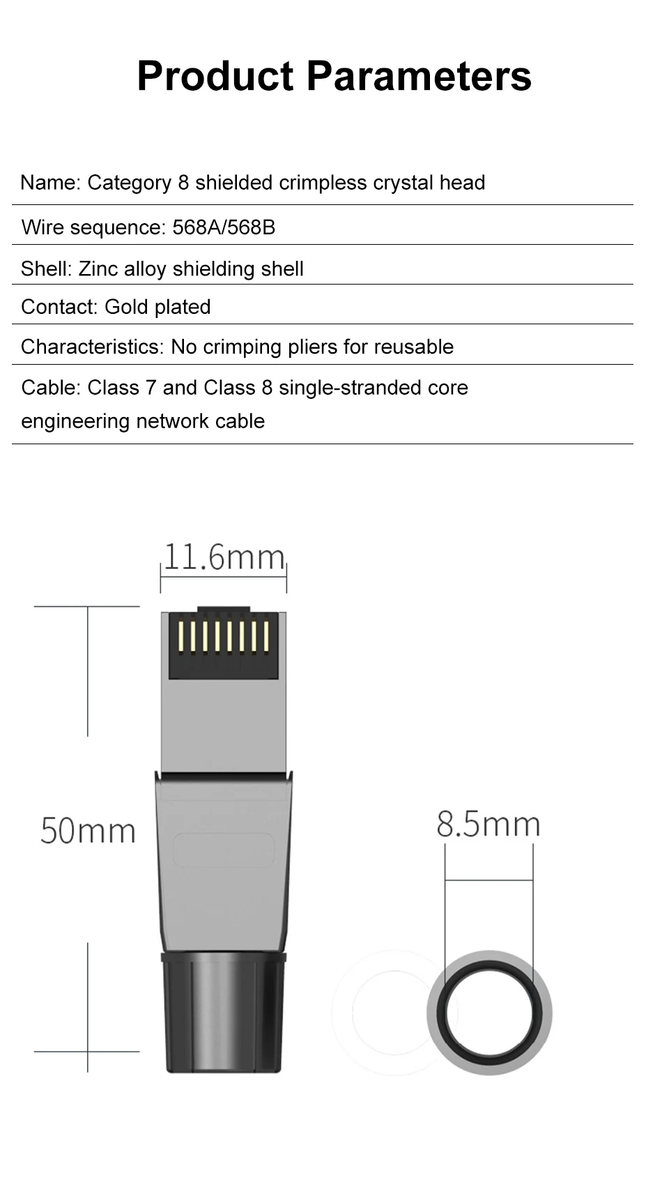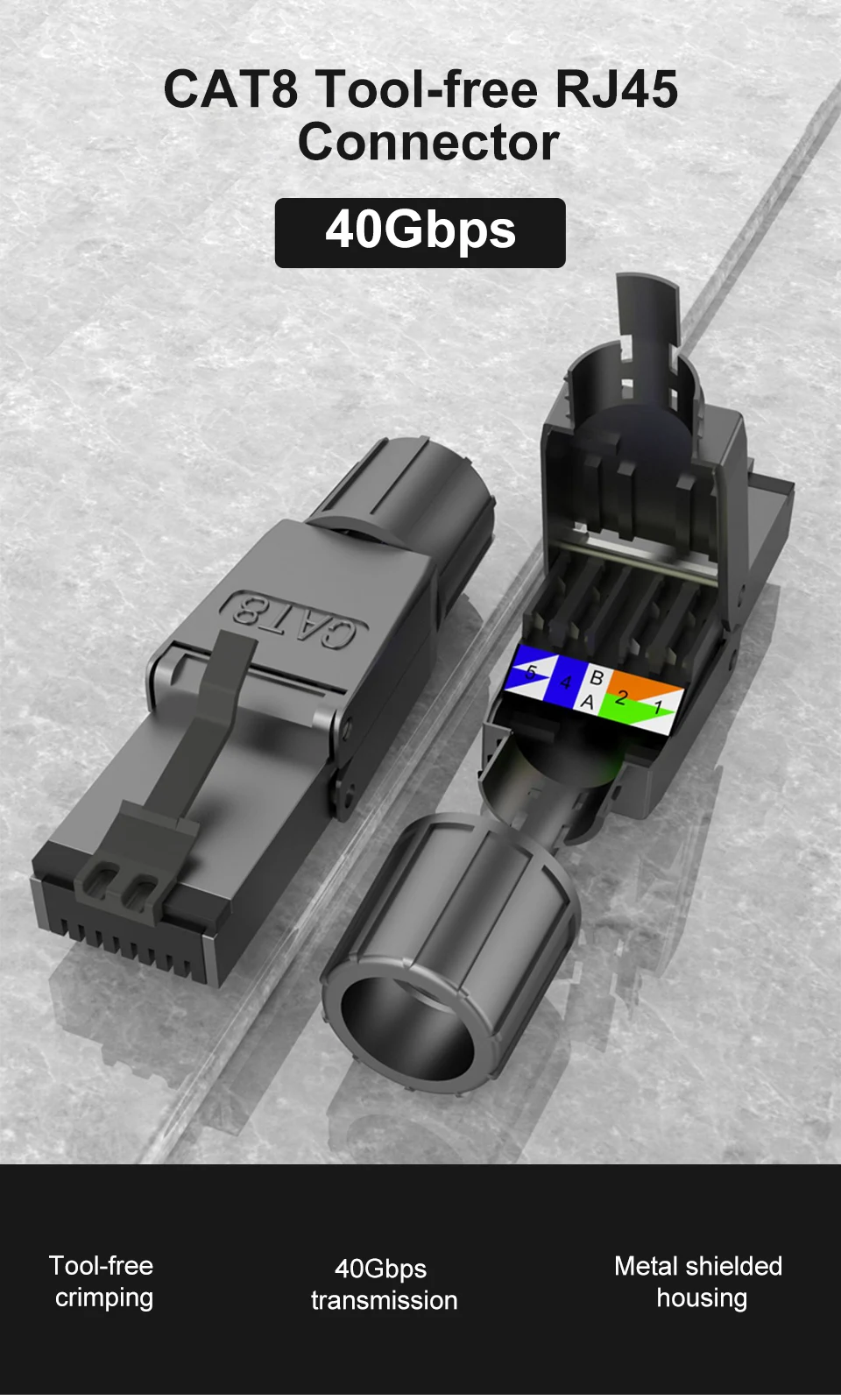Comprar Conector de campo blindado RJ45, enchufe de terminación para CAT6/6A/7/8 22AWG-24AWG 2000MHz 40G, Cable Lan de instalación sólida sin herramientas