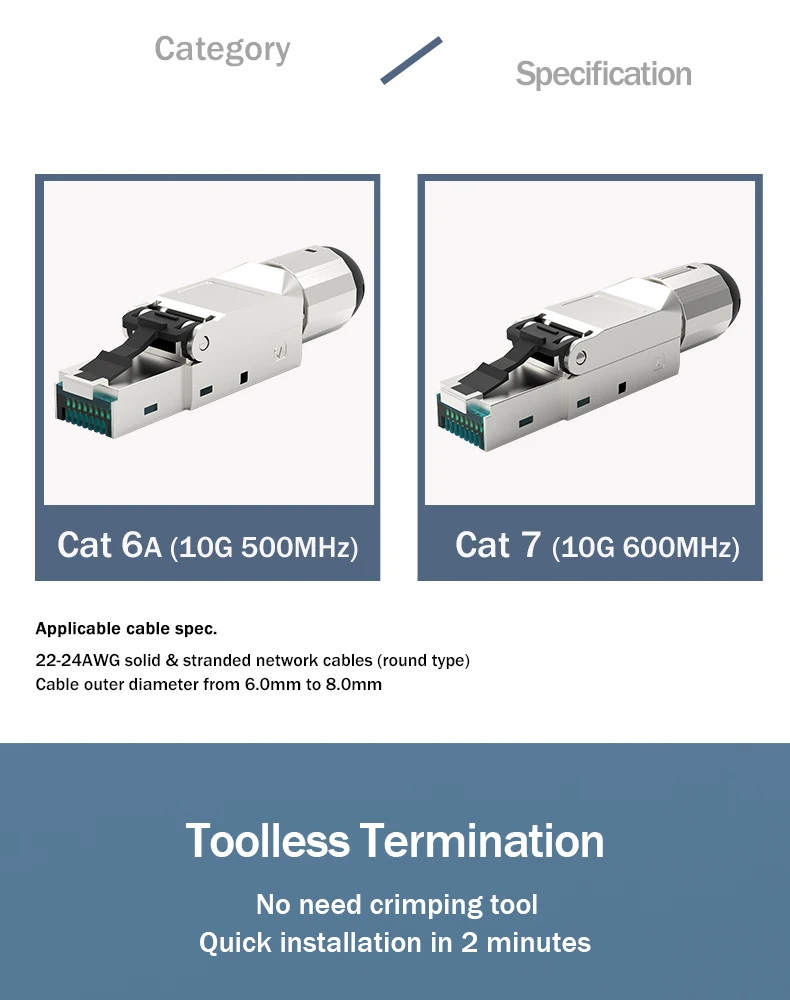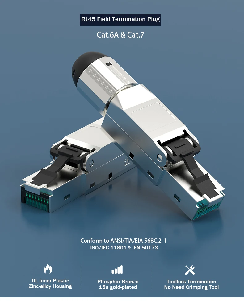 Comprar Conector de campo sin herramientas Linkwylan P117 RJ45, enchufe de terminación Cat7 Cat6A, blindado de Metal para Cables 22 23 24AWG