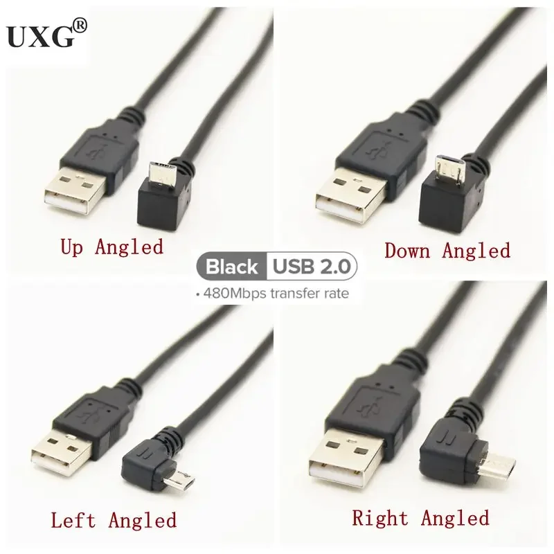 Up & Down & Left & Right Angled 90 Degree Micro USB Male to USB Data Charge Cable for TabletThe Micro USB Data Cable provides high-speed USB 2.0 data transfer rates, while simultaneously charging your device through your computer's USB port.This is a factory original USB Data Cable made for your device so transferring files are safe and easy!