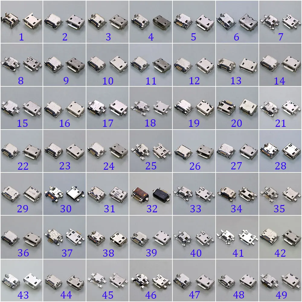 50 modelos de conector de carga Micro USB, puerto de toma USB para Samsung/Huawei/Xiaomi/Lenovo/Vivo/OPPO/Huawei, etc.