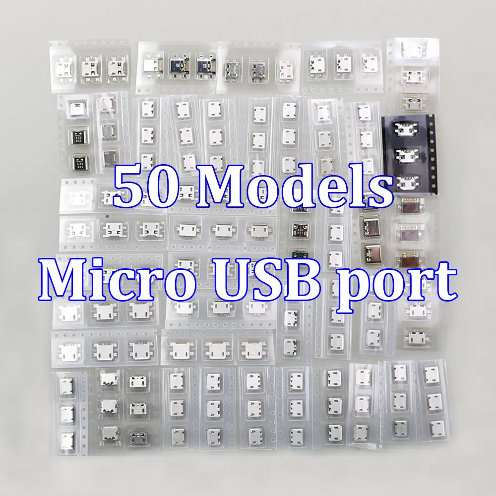 50 modelos de conector de carga Micro USB, puerto de toma USB para Samsung/Huawei/Xiaomi/Lenovo/Vivo/OPPO/Huawei, etc.
