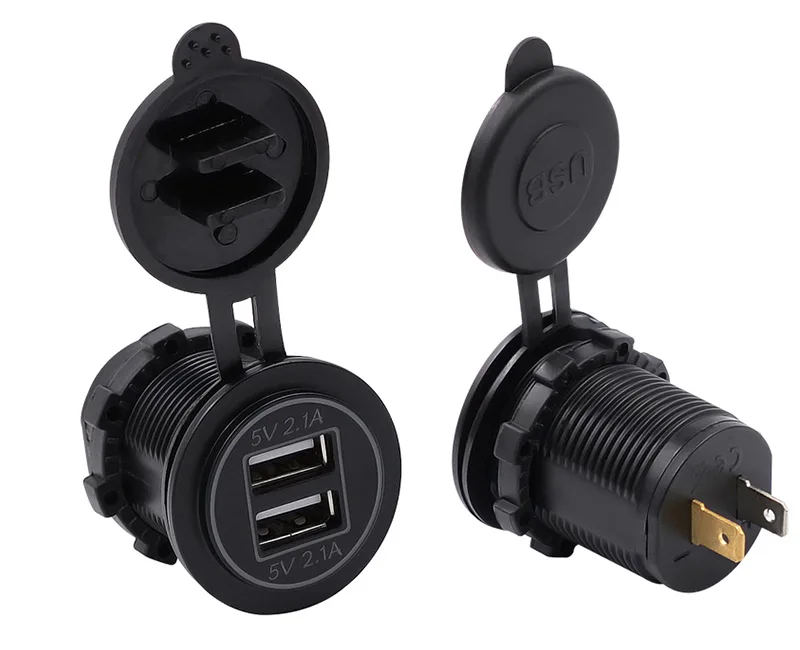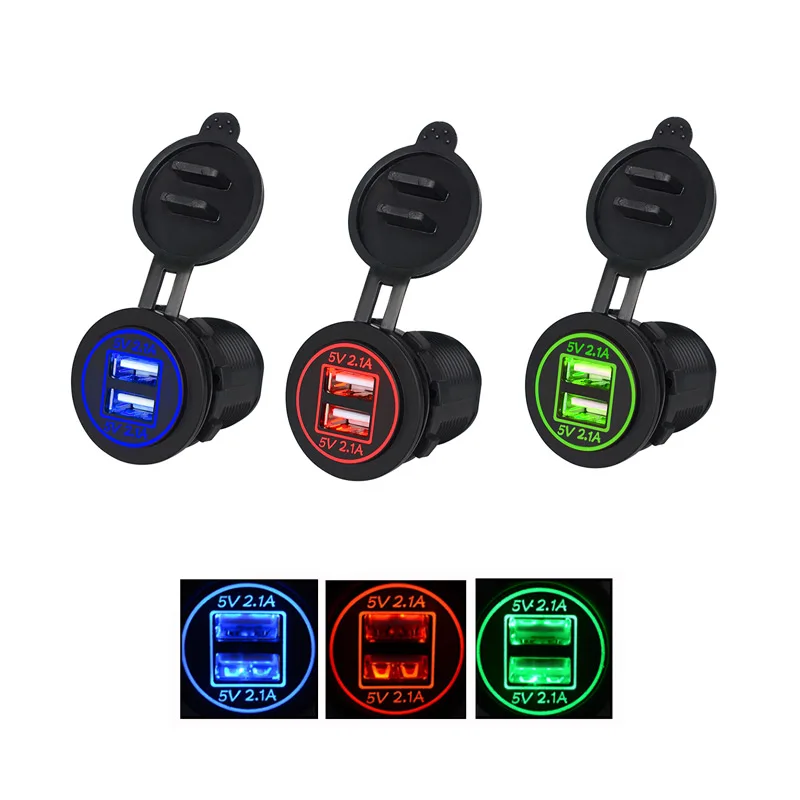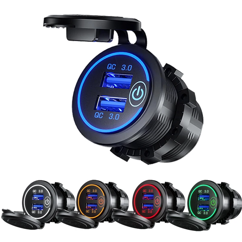 Comprar Conector de carga rápida USB 3,0, cargador de 12V a 5V, 12-24V, adaptador de doble enchufe para motocicleta, toma de corriente con lámpara LED