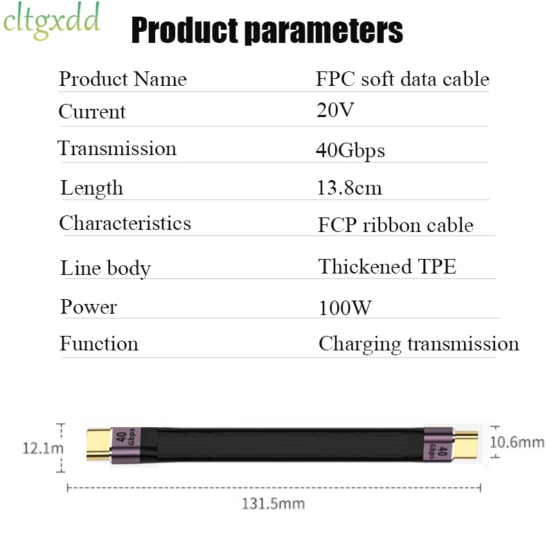 USB 4,0 de alta velocidad Gen2 40G de dos extremos 100W FPC Cable corto flexible Thunderbolt 3Type-C macho a macho PD Conector de carga rápida