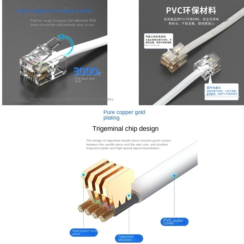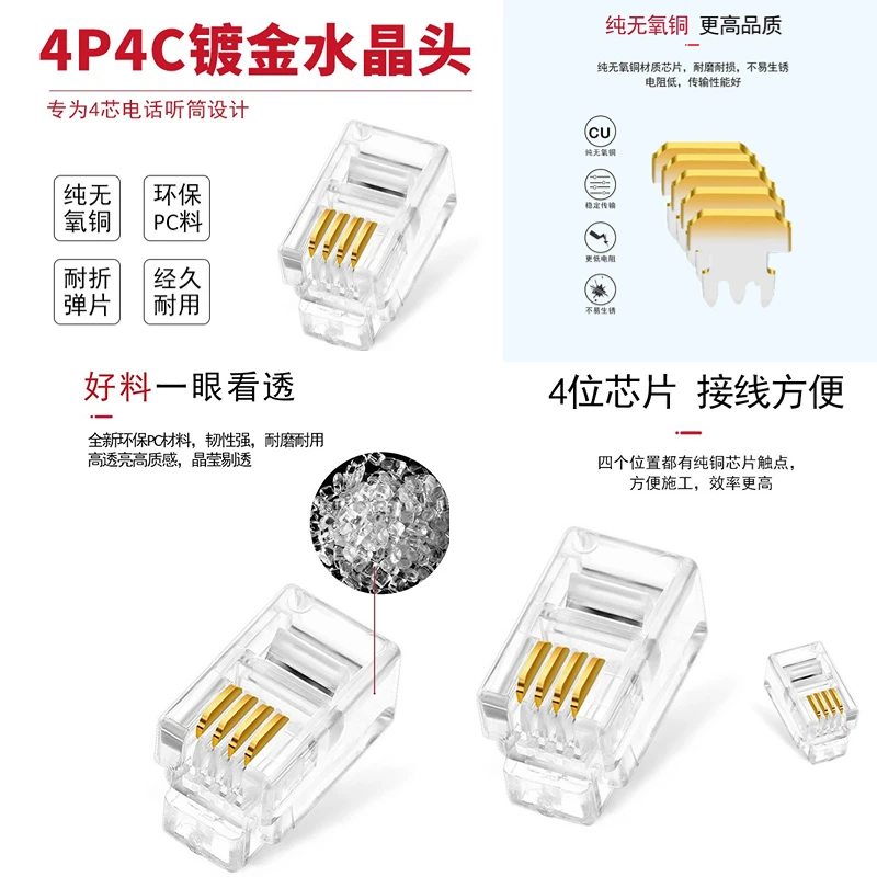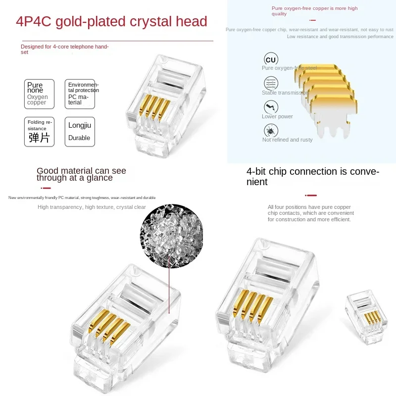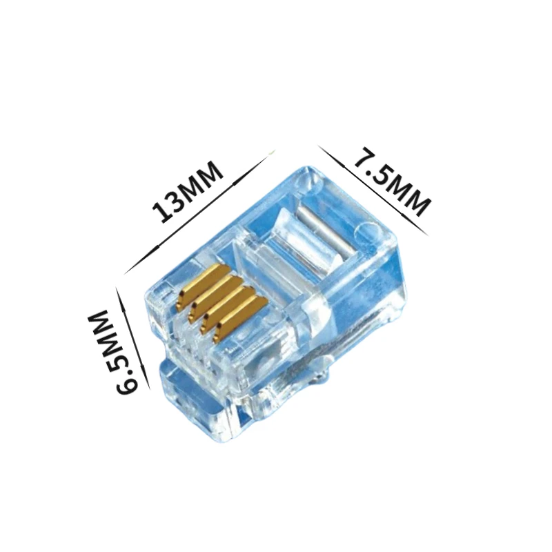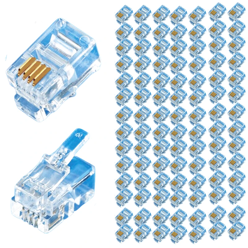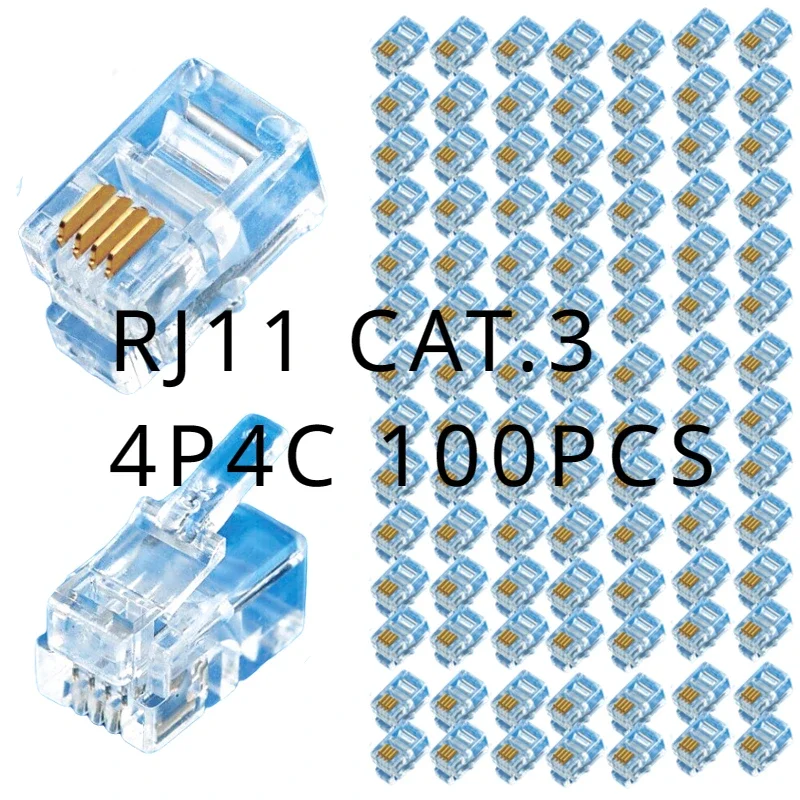Comprar Conector Cat3 RJ11 Cat.3 4P4C, enchufe de cabeza de cable modular, cabezal de cristal prensado para teléfono chapado en oro (100 piezas)
