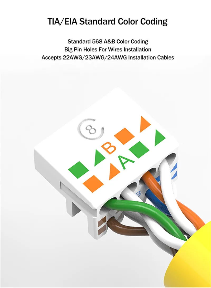 4. Adecuado para:22AWG-24AWG Cables trenzados y sólidosCable Ethernet Cat6A/7/8